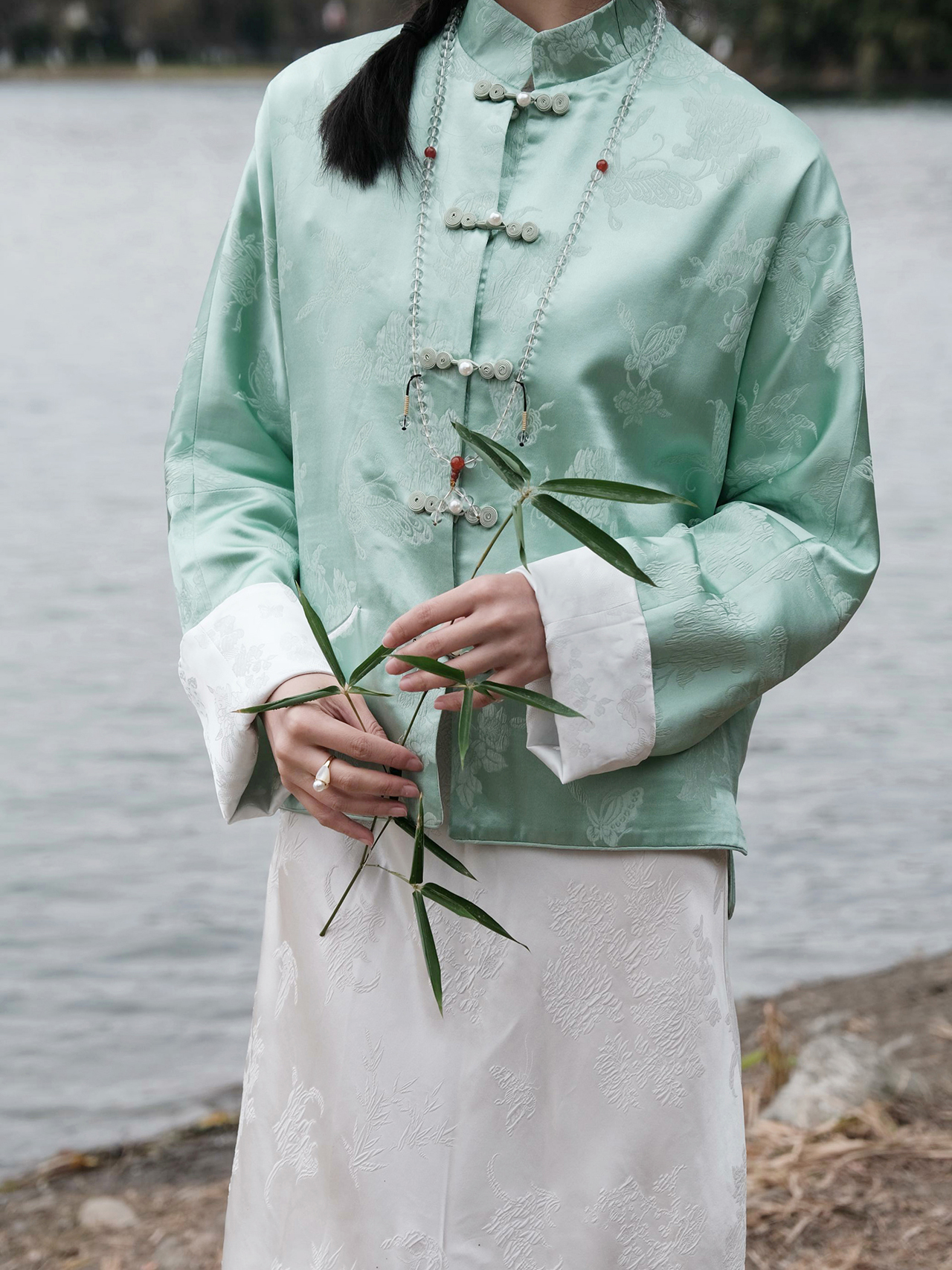 盛唐牡丹 |艾绿蝶恋花冠乐绉双面穿外套