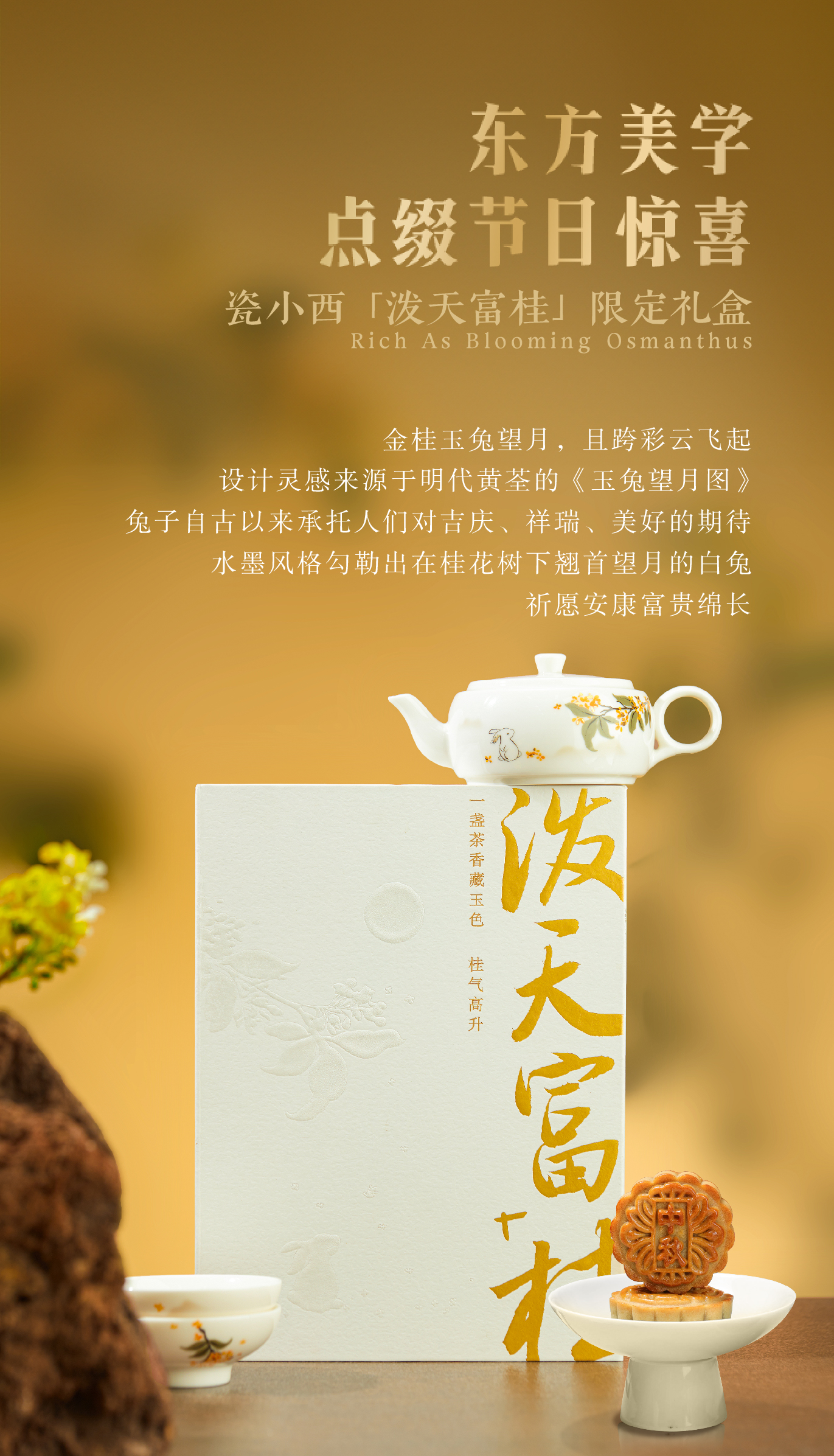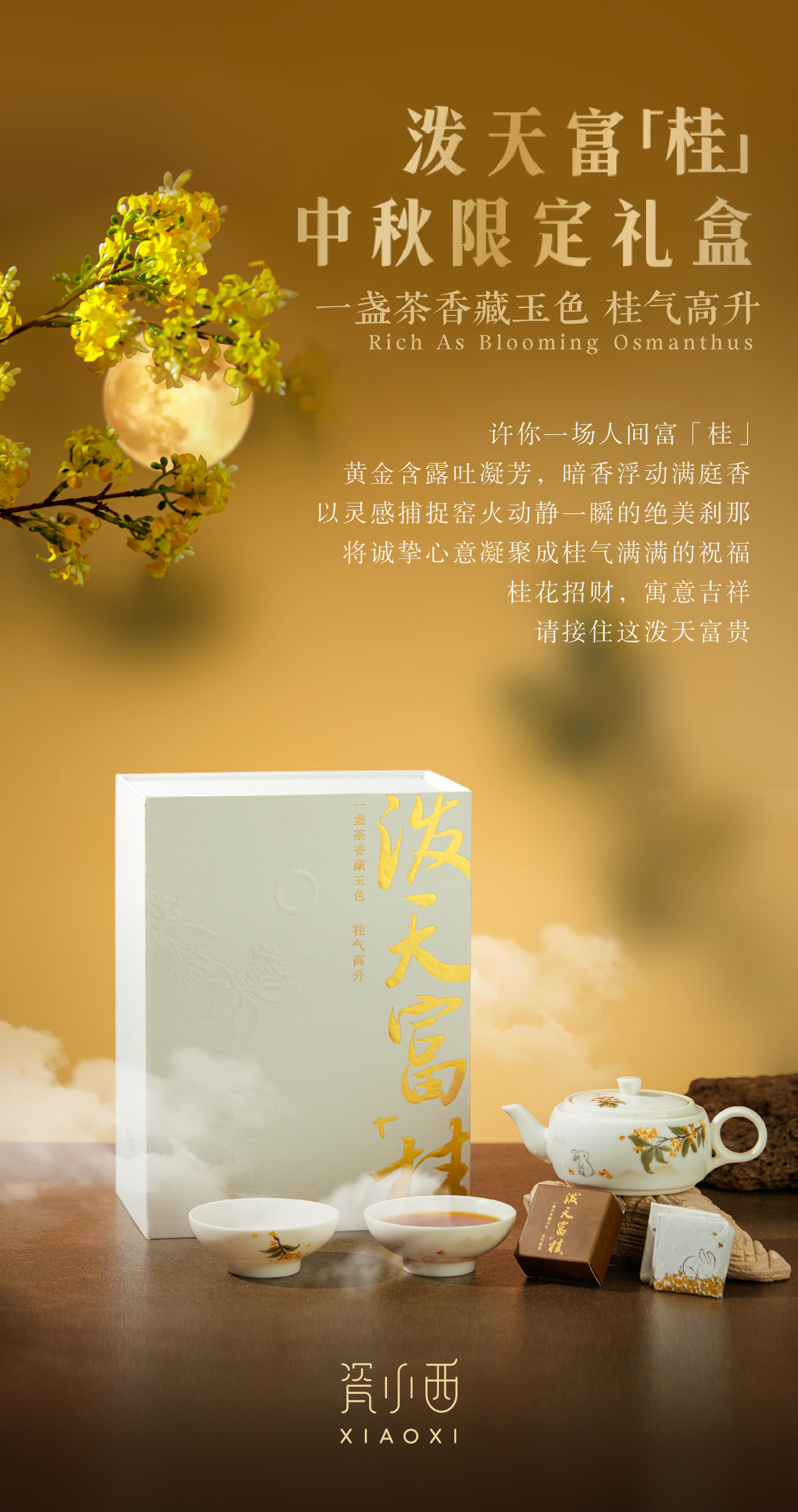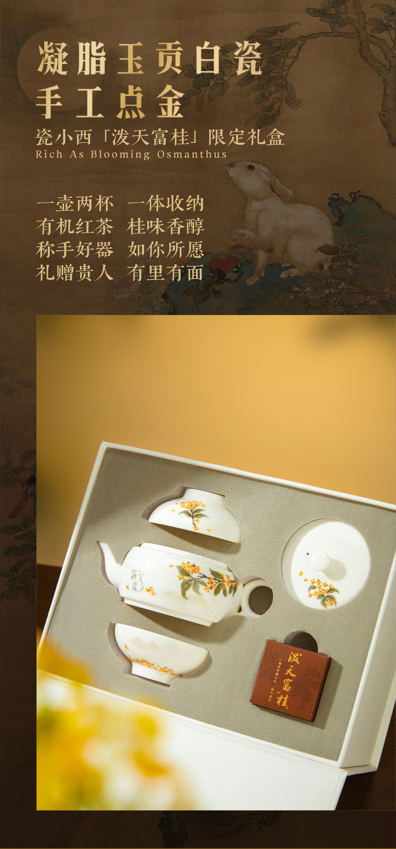 【产品】瓷小西泼天富“桂”中秋礼盒(内含一壶两杯、一盒桂花红茶6g*3)