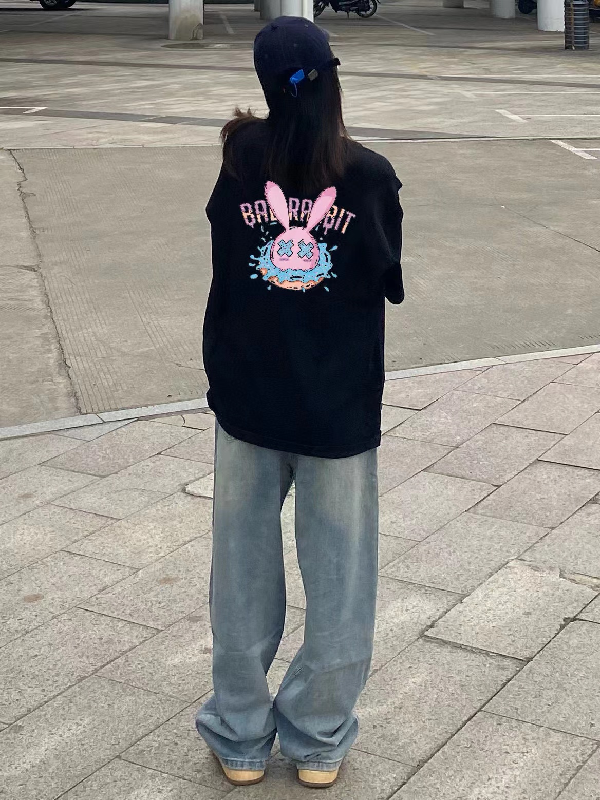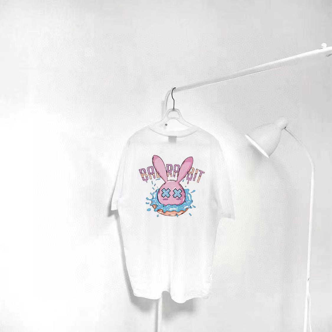粉色兔子甜甜圈情侣短袖!采用260克双砂面料 三针五线做工,领口包包边条正确纹路立体印花!正确面料版型!舒适透气柔软又亲肤!下半身随意搭配出行、怎么穿都好看!上身显瘦挑高!小哥小姐姐jue对是你衣橱!穿洗多次都不愿扔掉的一款T恤!赶紧入手吧