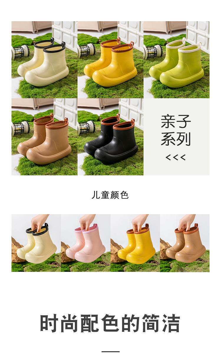 【追逐自由,糖果色儿童雨鞋】亲子系列儿童雨鞋,轻盈不闷穿着无负担舒适每一步,新款轻便防滑外穿可爱中小童亲子软底中筒雨靴QQ