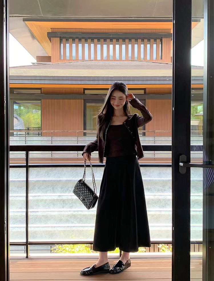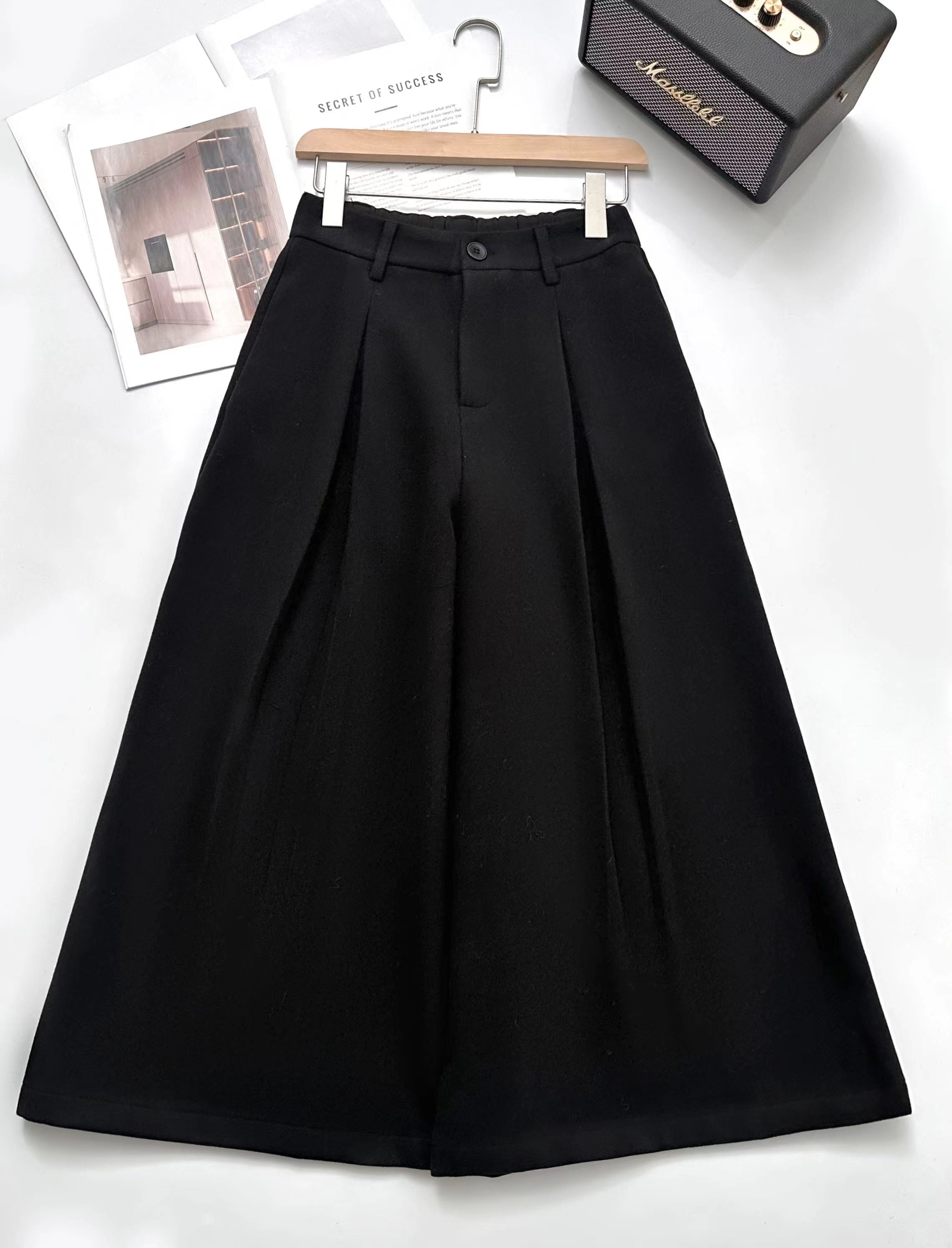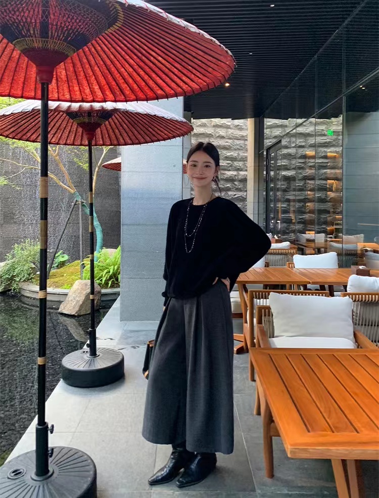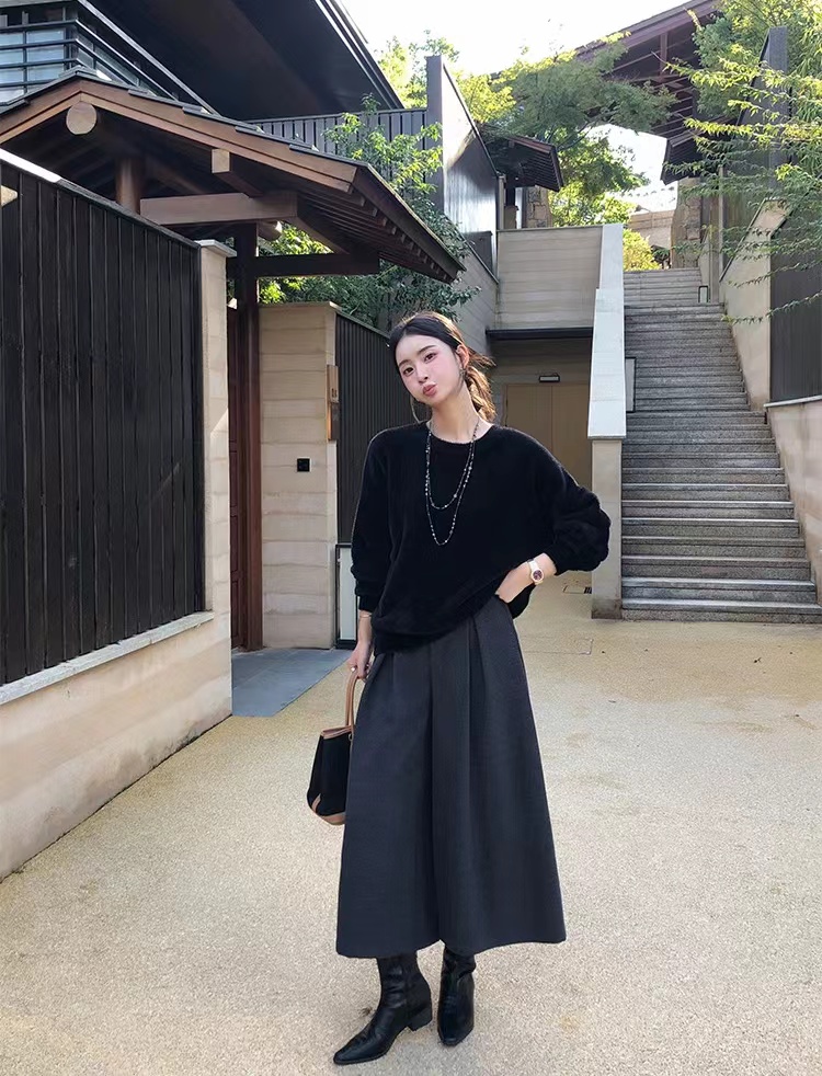 当阔腿裤的随性撞上半裙,便有了这条阔腿裙裤!既是通勤人的体面铠甲,也是秋冬街头的松弛战袍。版型设计流畅的线条,自然腰悠然垂下,将东方女性的柔美与西方时尚的大气完/美糅合!高腰的剪裁,轻轻一提,便瞬间拉长腿部比例,让身姿如修竹般挺拔纤长。阔摆的造型,行走间翩跹灵动,既有着裙装的浪漫飘逸又兼具裤装的利落洒脱,动静之间,皆是风情万种!后松紧腰设计,不挑身材,包容性更高!前片做了两道褶皱,增添设计感!黑色款,神秘而高/贵,轻松驾驭各种场合,尽显优雅大气深灰色款,低调中透着精/致,为穿搭增添一份沉稳的篙级感~面料是秋冬的舒适刚需,羊毛混纺面料,摸起来是软而有骨的质感,不会像普通呢料那样显臃肿,垂坠感刚好撑得起阔型,坐下时自然堆叠出慵懒的褶皱,站起又立刻恢复利落线条~秋冬搭配各种毛衣/大衣/外套皆可,属于百搭单品!