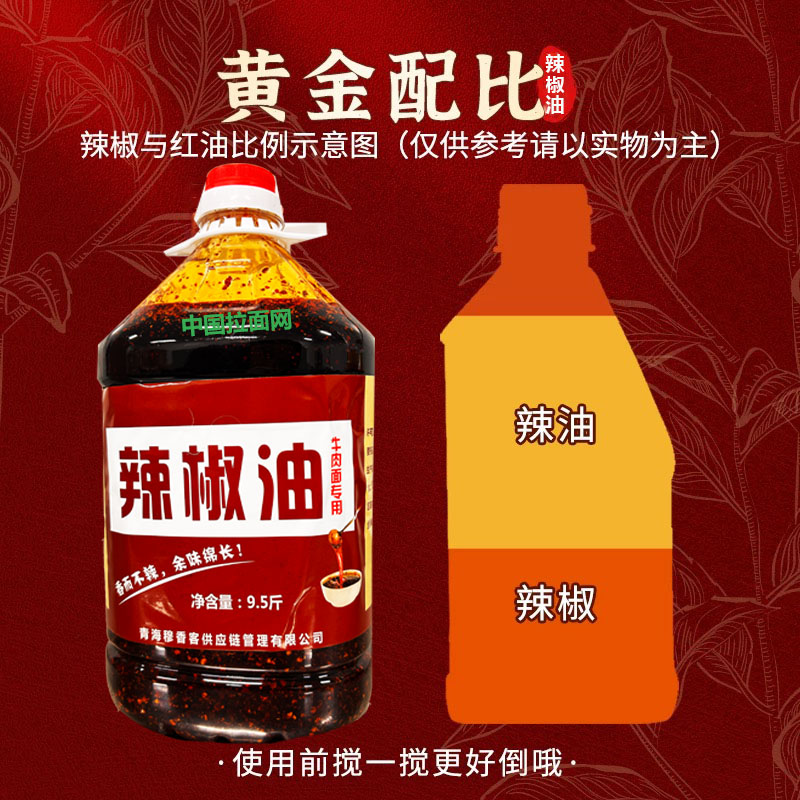 牛肉面专用辣椒油 辣椒红油(38斤)一箱4桶 4.75Kg*4桶/箱 青海拉面店兰州拉面店餐饮店专用辣椒油穆乡客