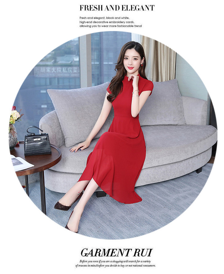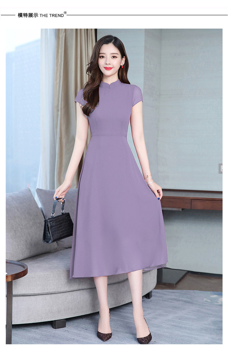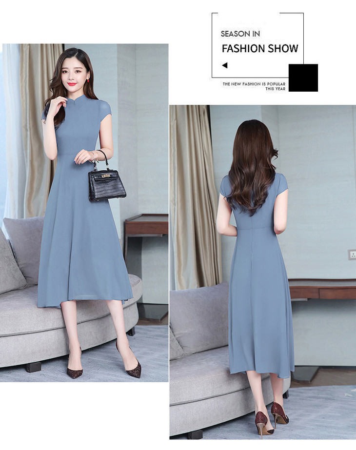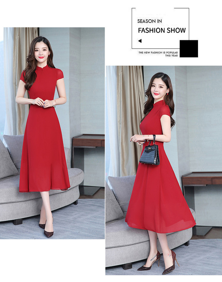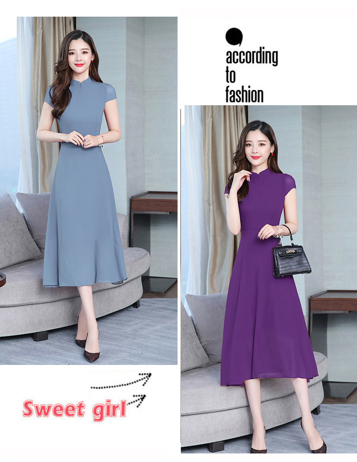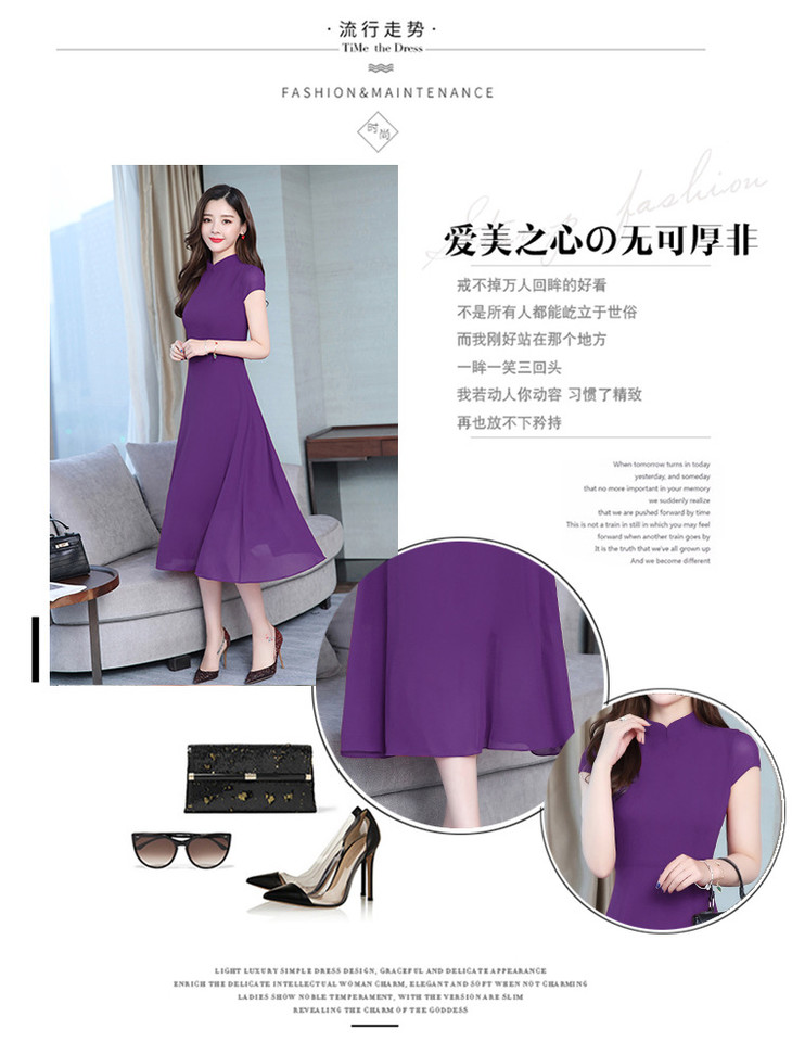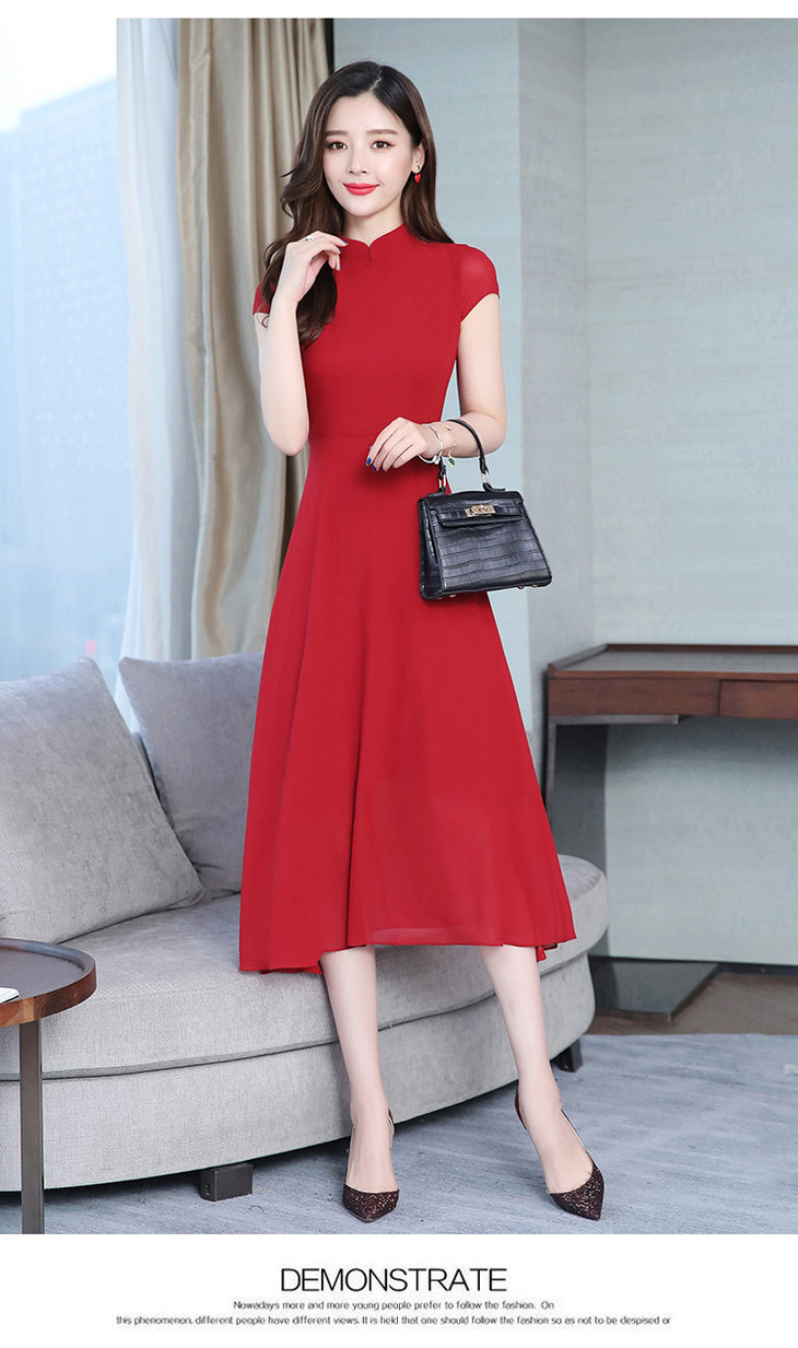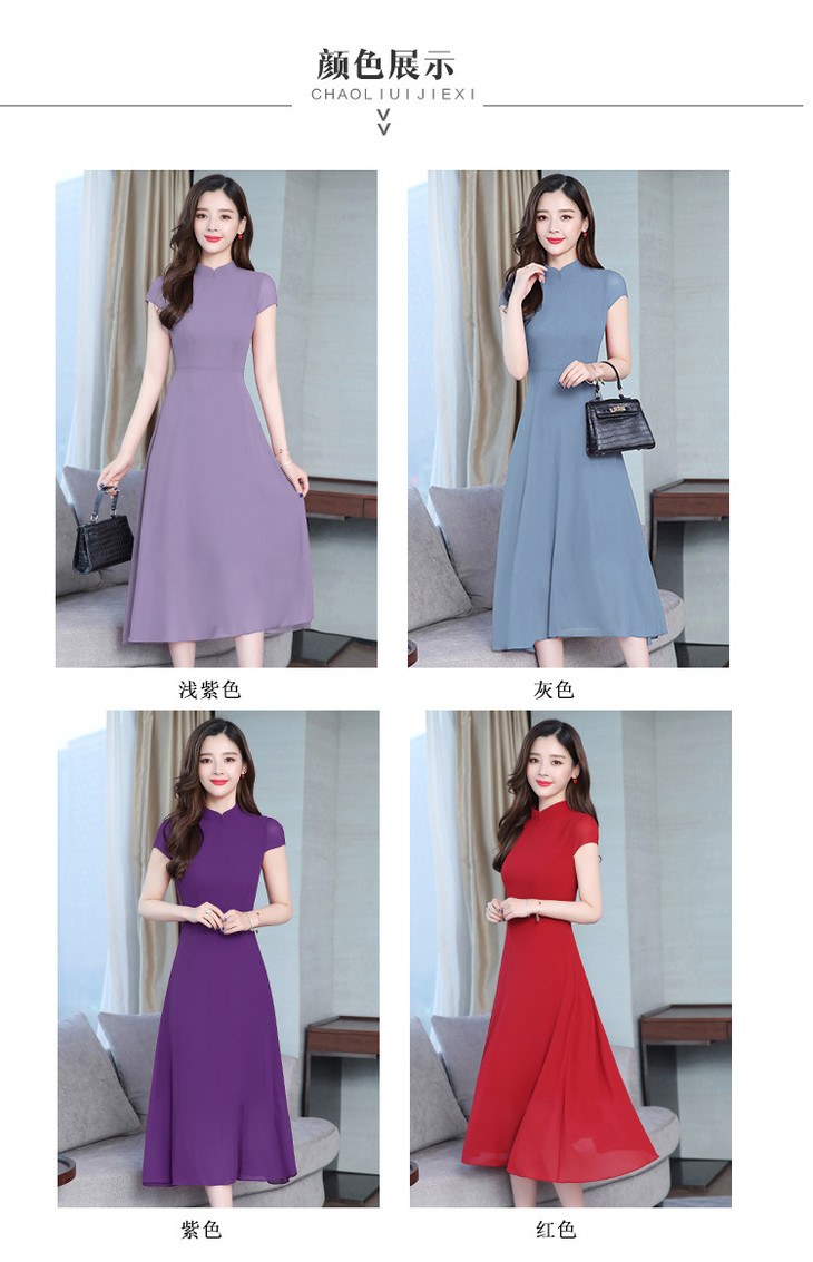 【服饰鞋包】雪纺连衣裙女春夏新款韩版旗袍修身显瘦中长款沙滩连衣裙女