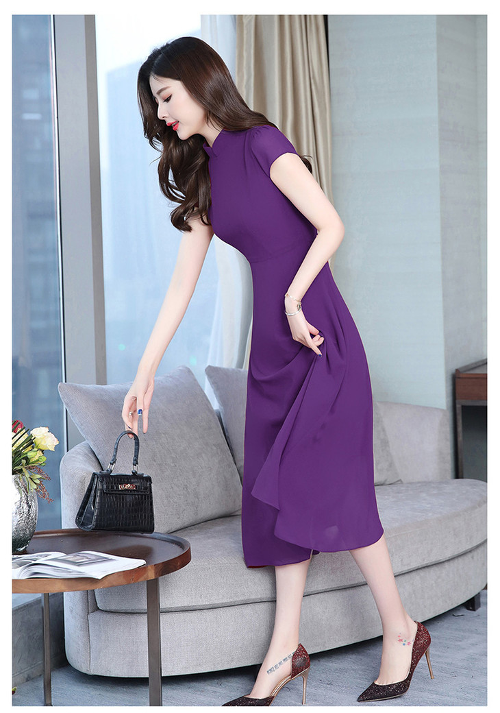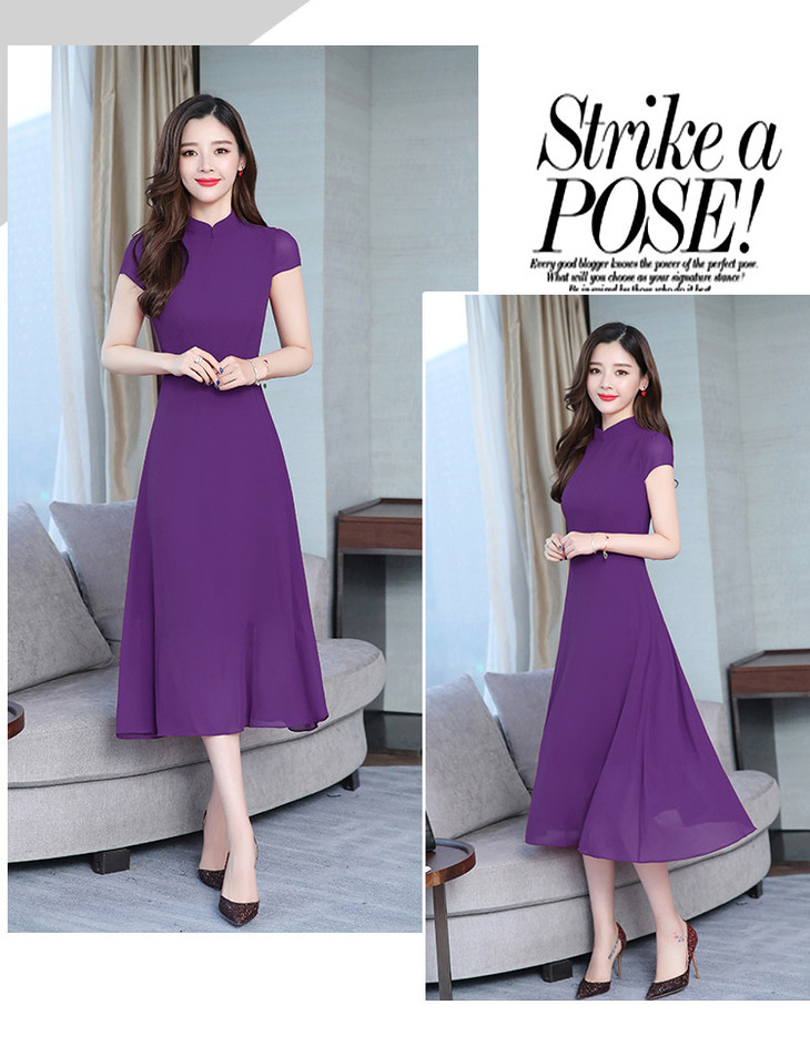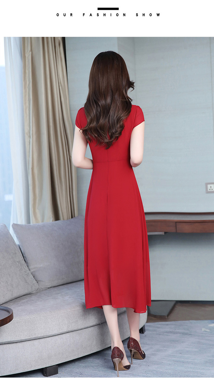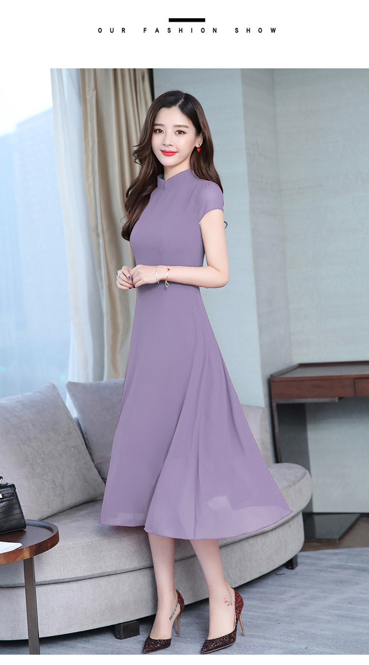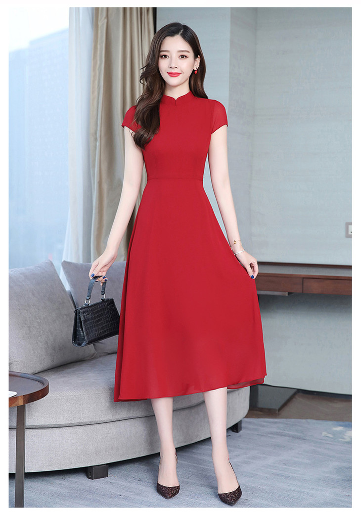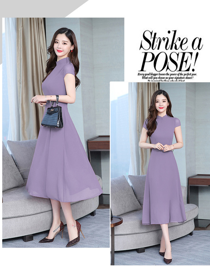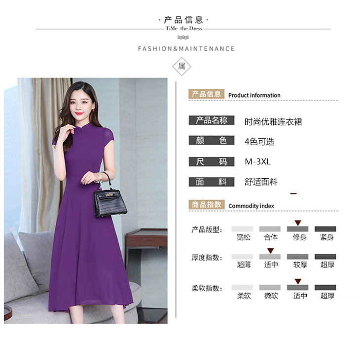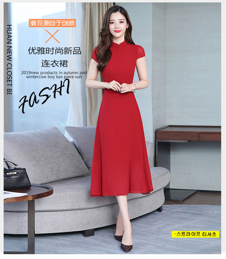 【服饰鞋包】雪纺连衣裙女春夏新款韩版旗袍修身显瘦中长款沙滩连衣裙女