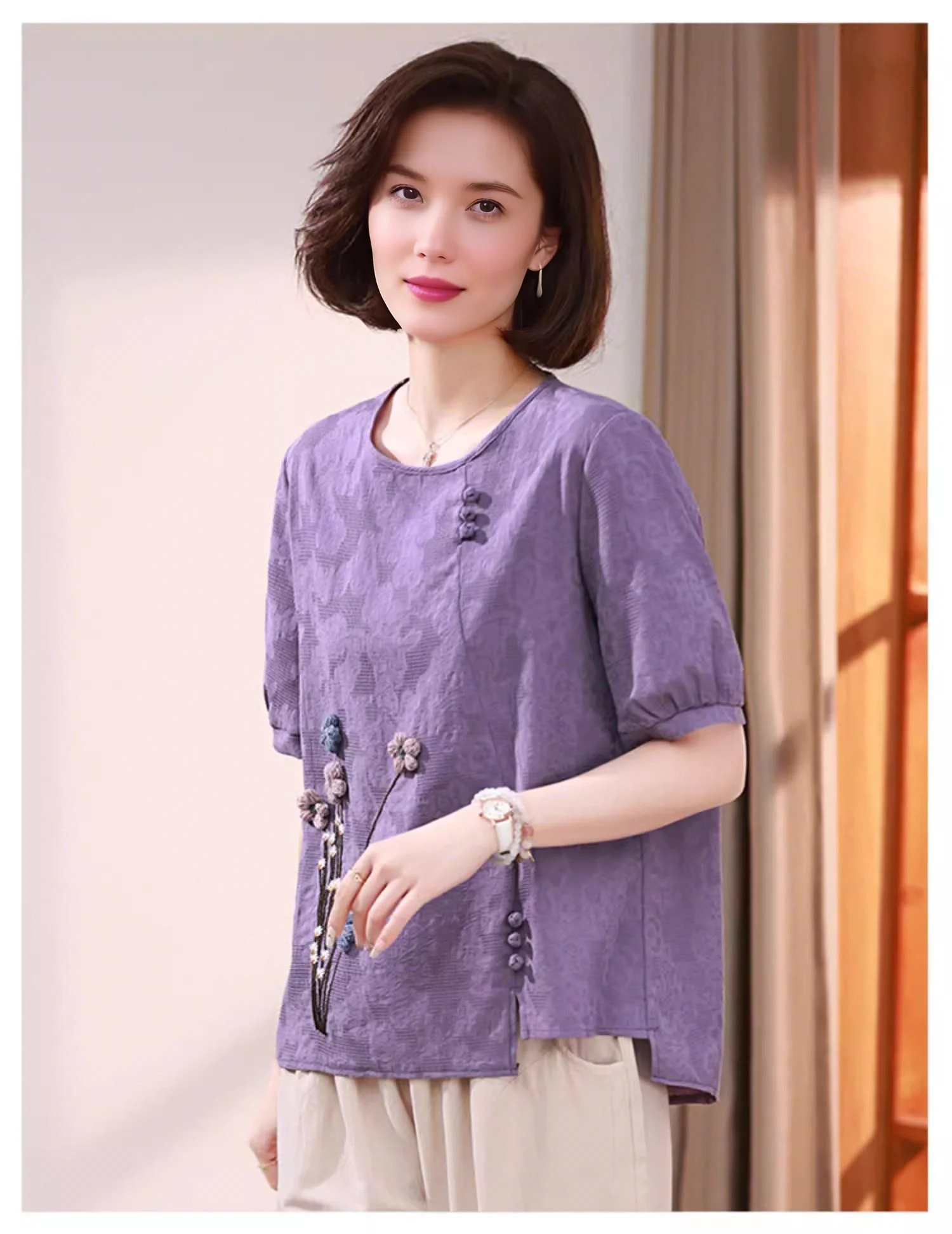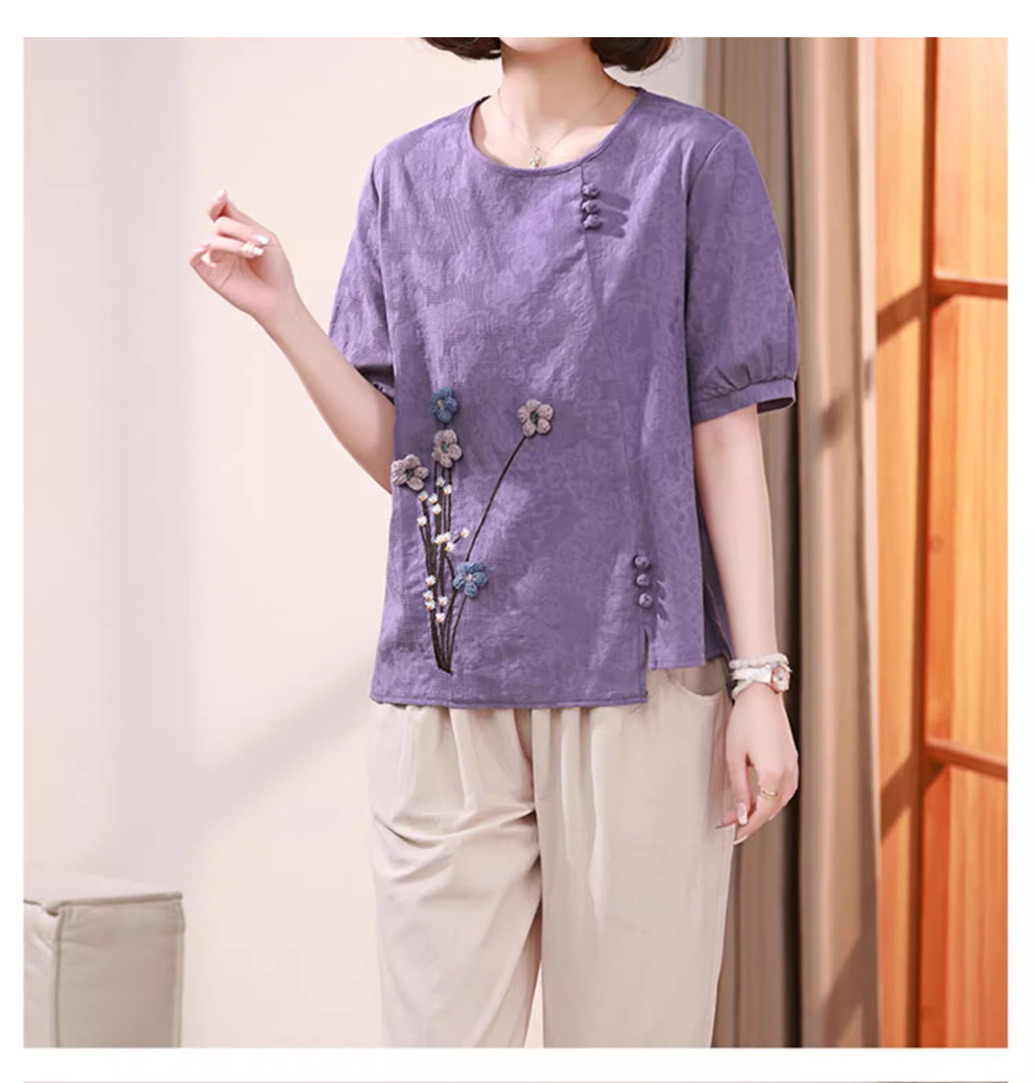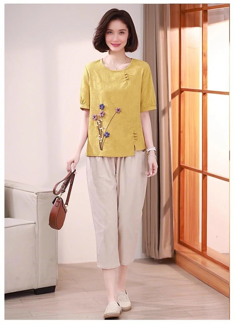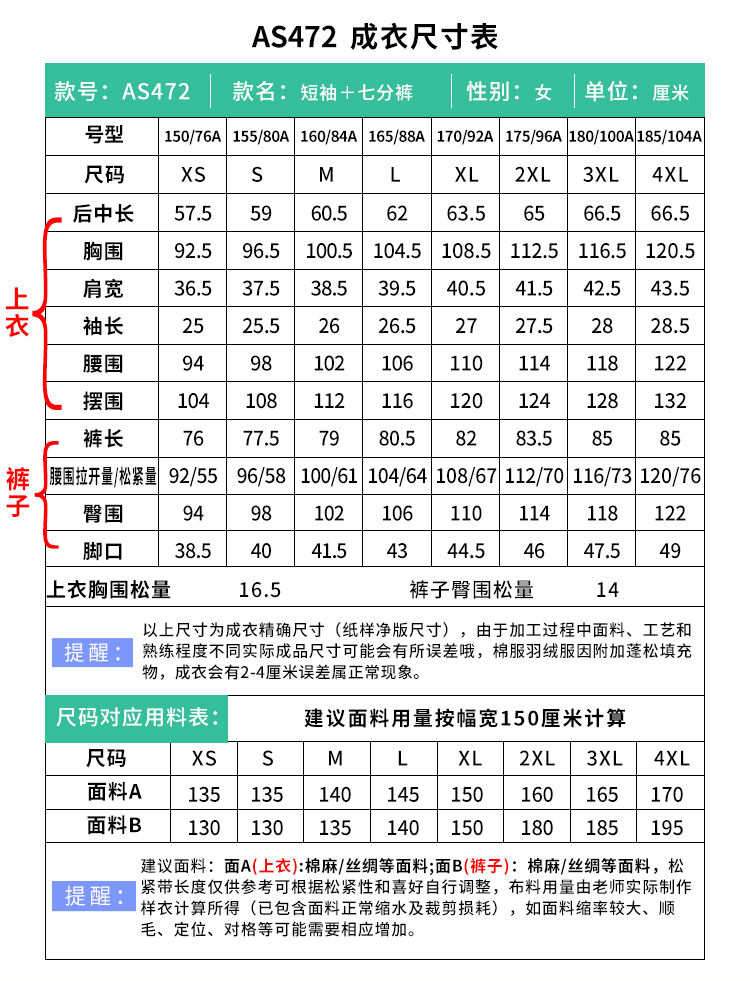 裁缝学苑AS472中老年圆领上衣裤子套装纸样女装T恤短袖新款棉麻上衣样板