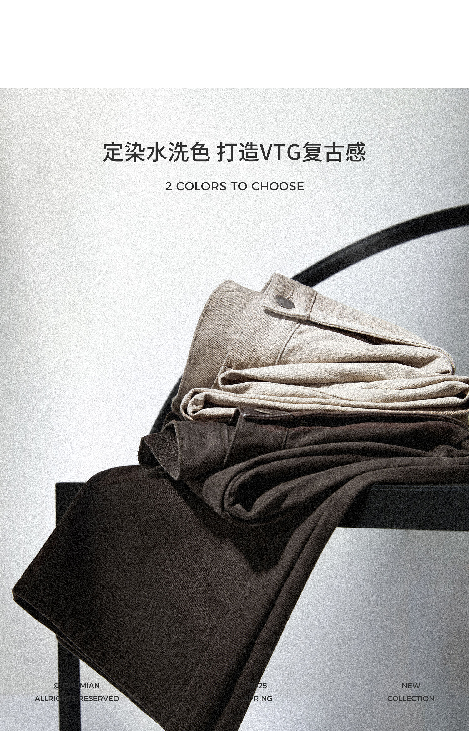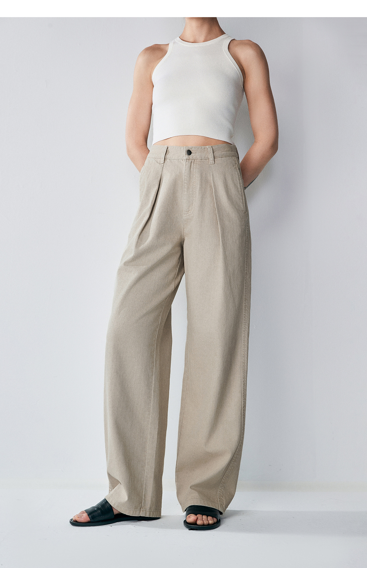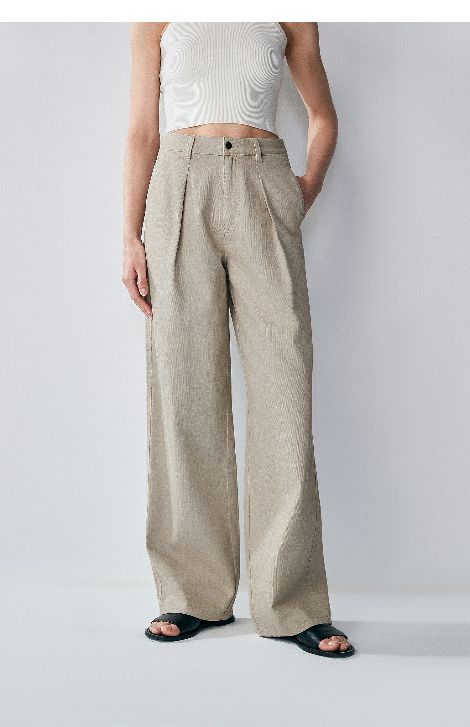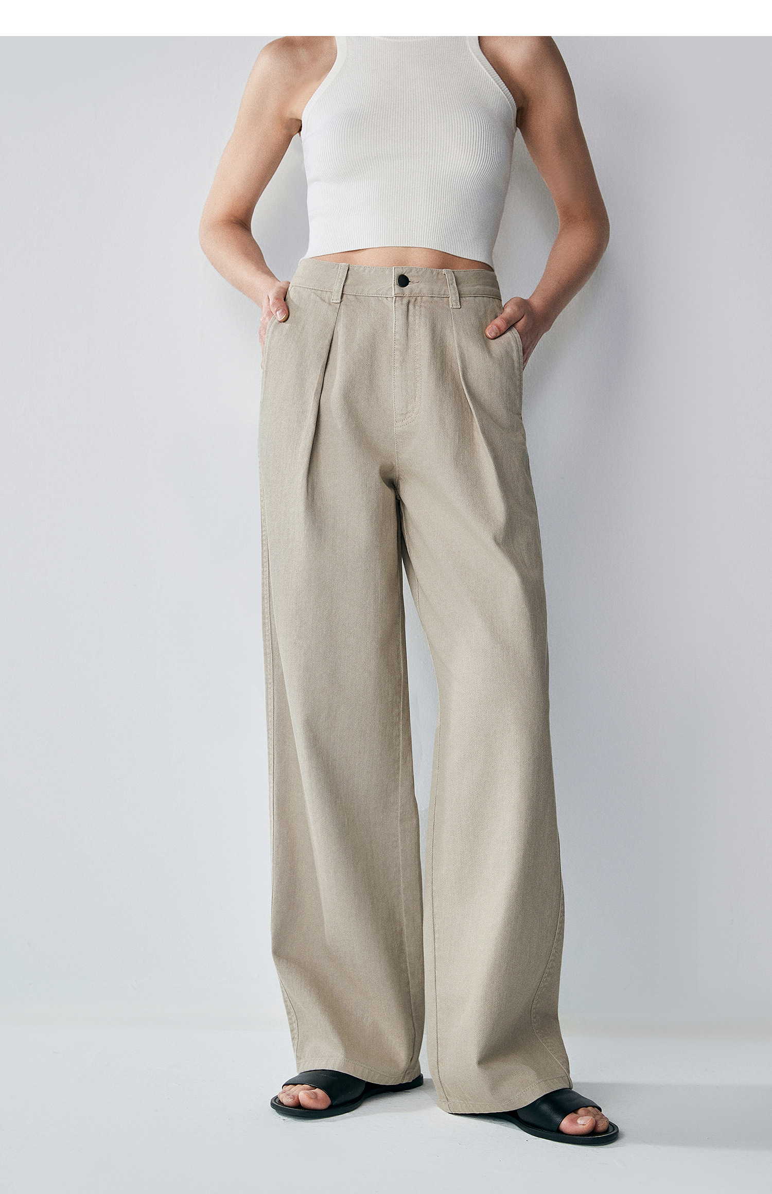 棉仓362618018-初棉打褶阔感水洗镰刀牛仔裤