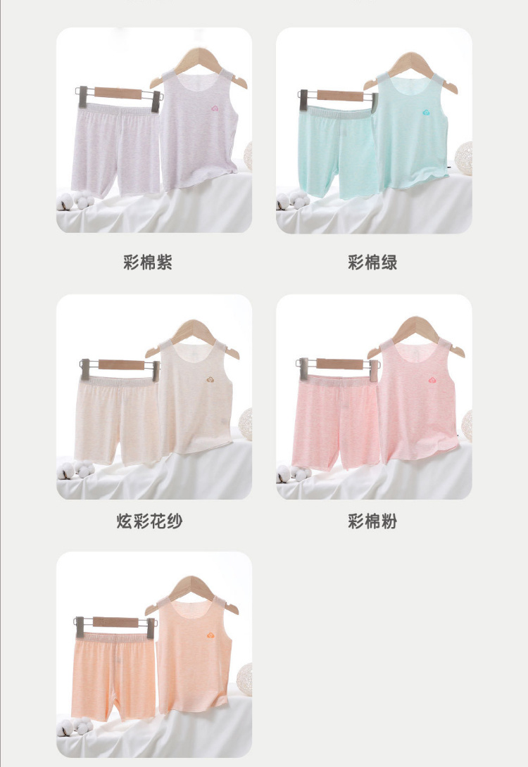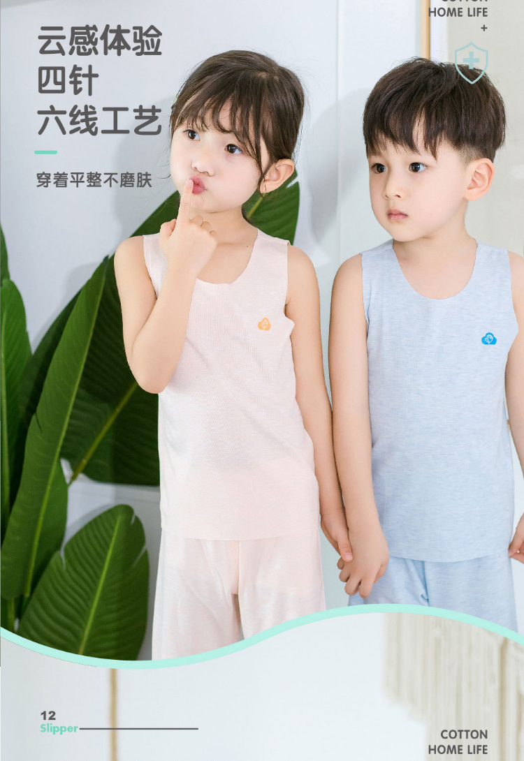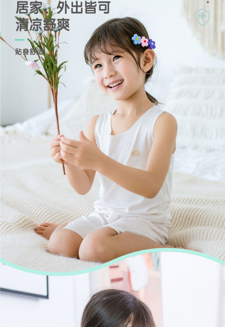 【舒蒂童装】夏季儿童彩纱背心套装无痕高弹力T恤
