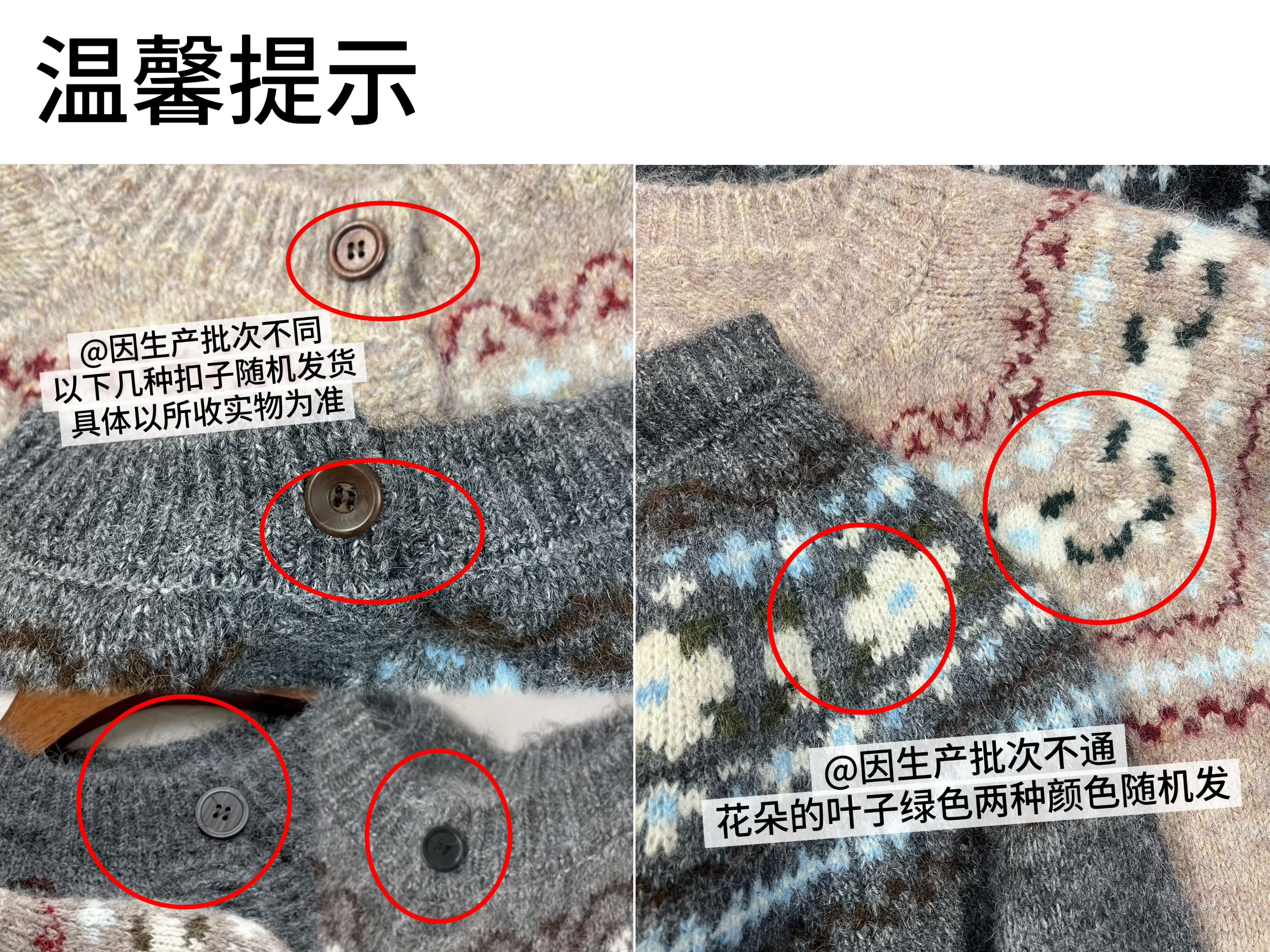 费尔岛风柔软复古毛衣开衫N1286:38.0%聚酯纤维 ,36.0%腈纶,26.0%锦纶