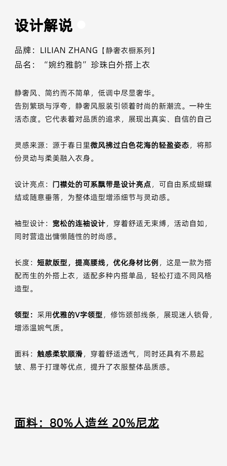 E“定制”——静奢风———“婉约雅韵”——珍珠白外搭开衫上衣 2502023