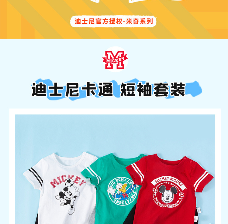迪士尼男童夏季套洋气短袖短裤两件套套装