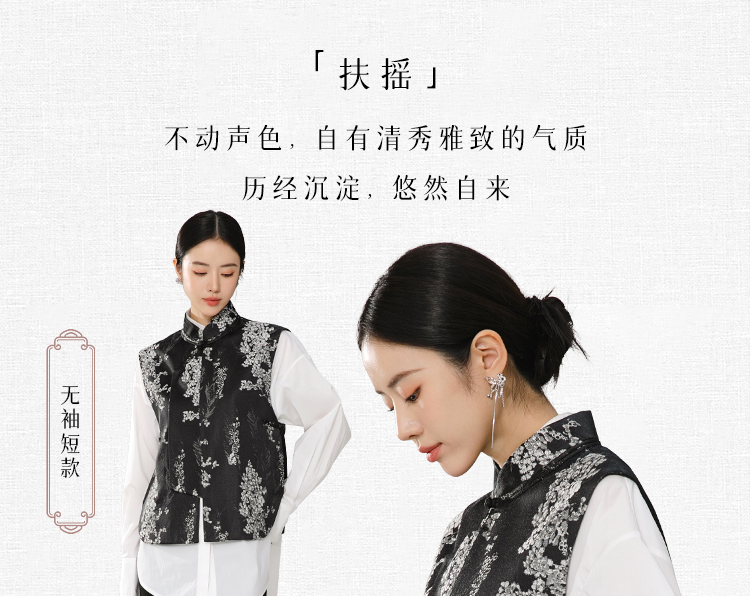 扶摇 中式马甲背心女春秋外搭黑色小坎肩国风高级感无袖外套