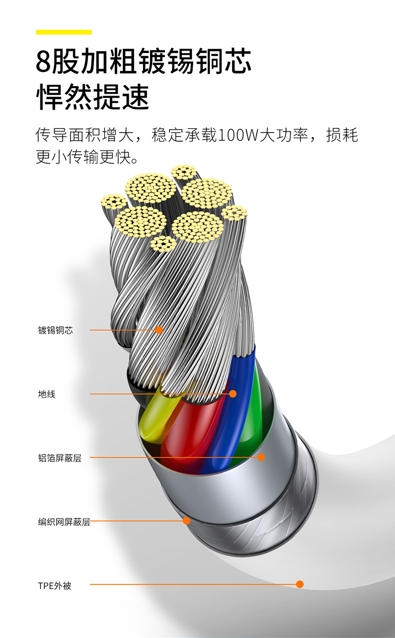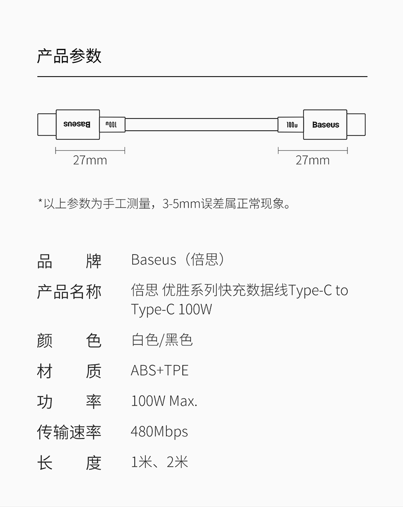 倍思优胜系列 安卓快充数据线Type-C to Type-C 100W