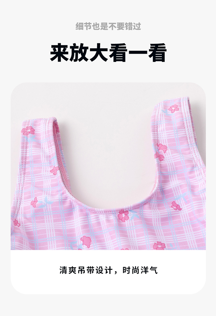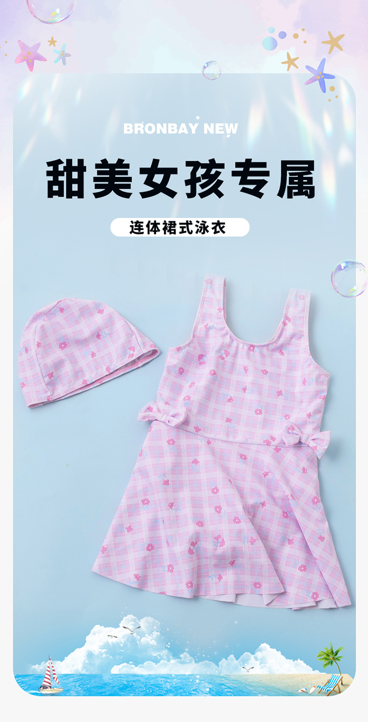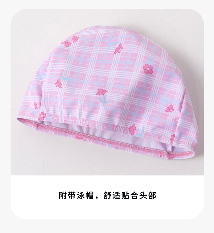 贝贝怡女童连体泳衣套装夏季女宝宝连体裙式泳衣防晒速干泳衣泳帽