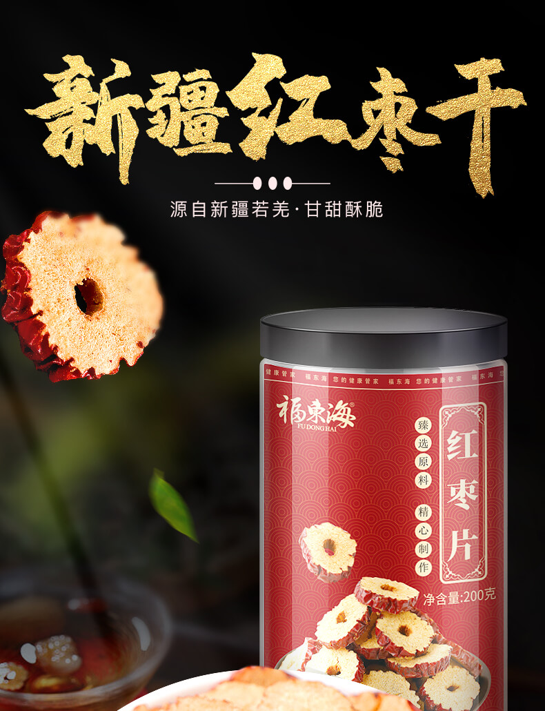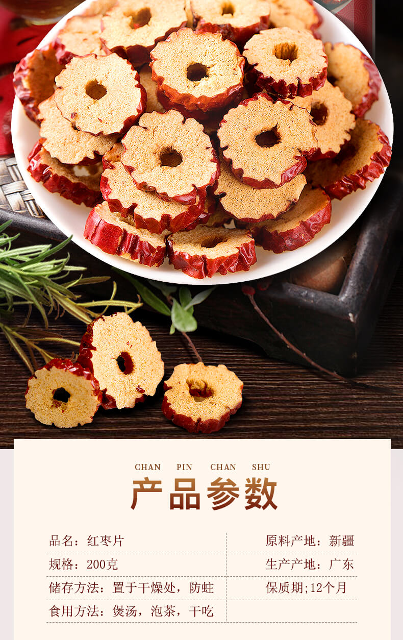 福东海 红枣 红枣片干新疆大枣红枣无核枣片枣子免洗即食红枣干泡茶泡水 200克