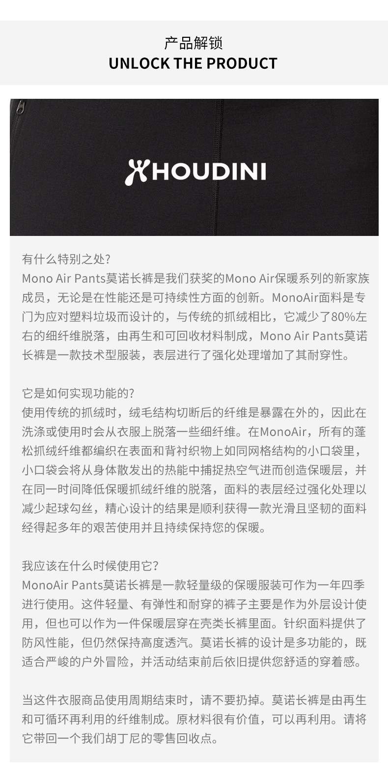 HOUDINI胡丁尼 Mono Air Pants 莫诺 男款户外保暖舒适抓绒裤830013