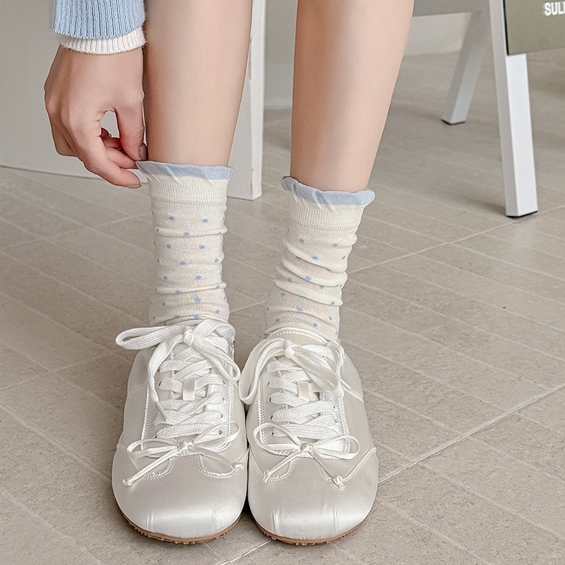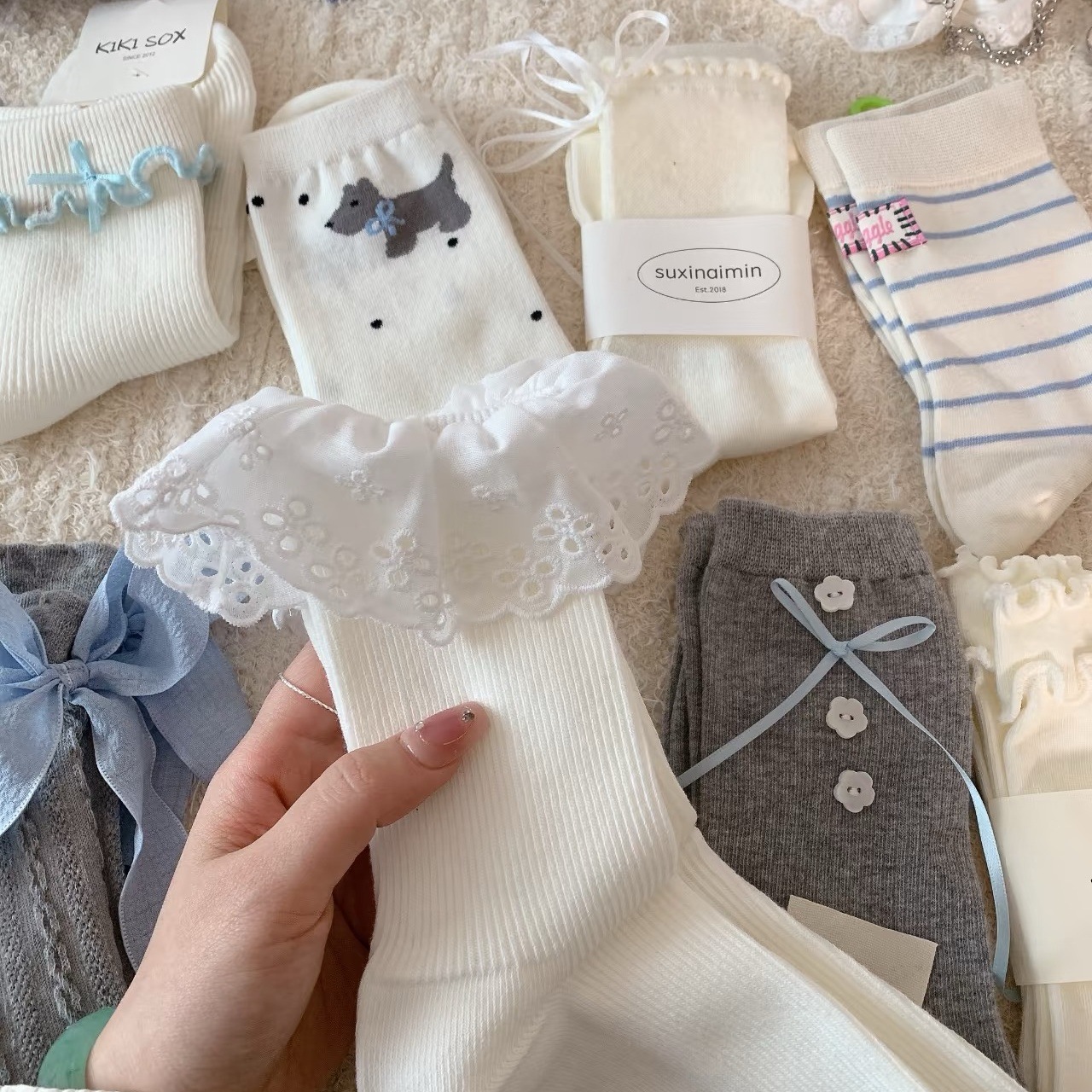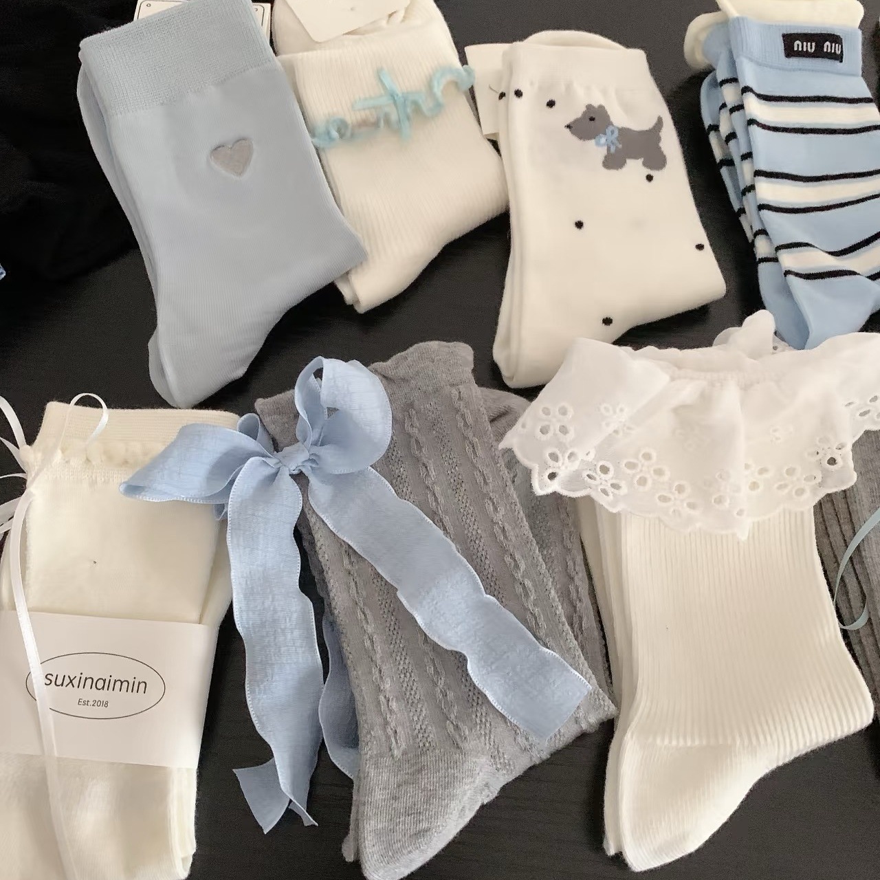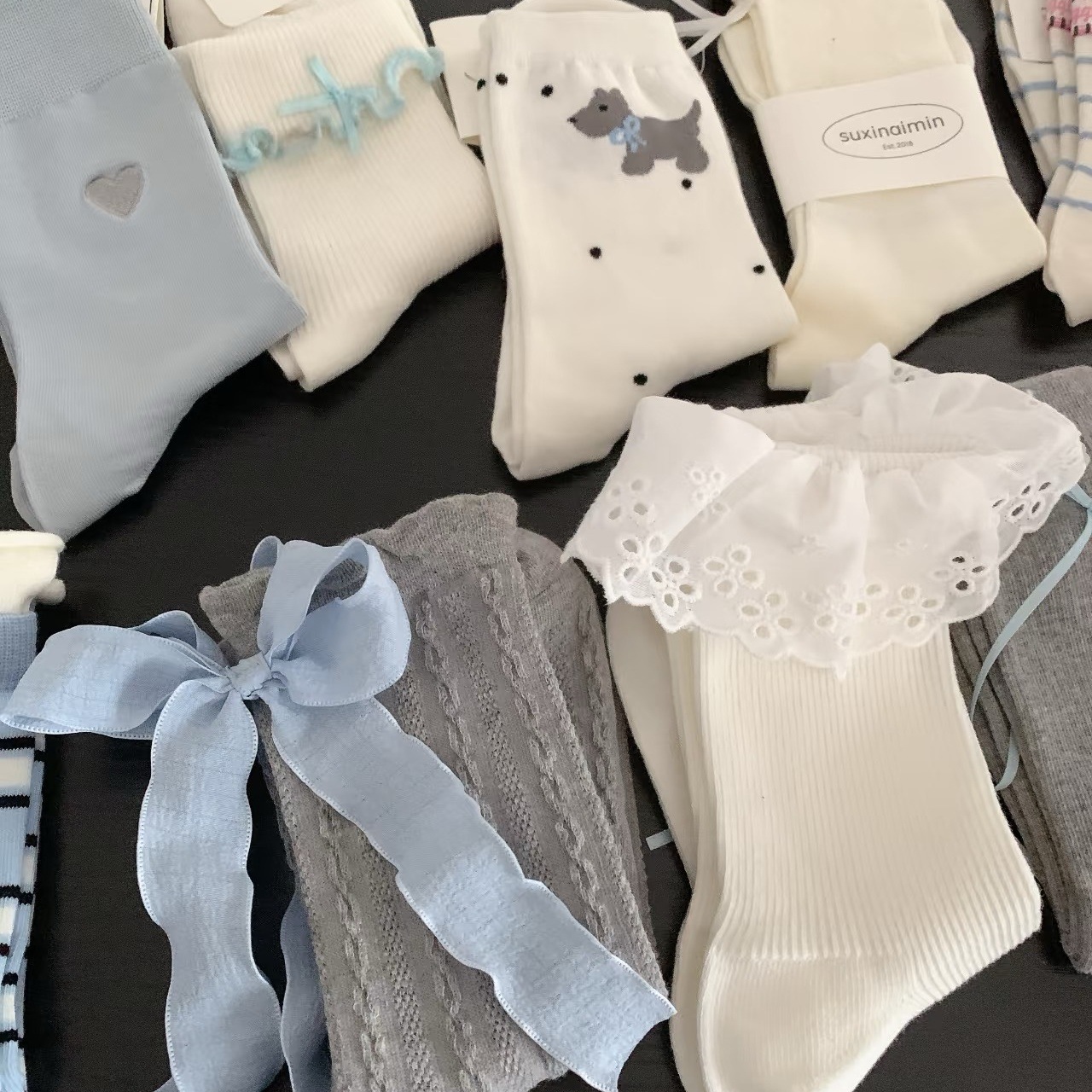 春款袜子大合集!任选4双包邮~棉感中筒袜韩系ins同款条纹纯色波点甜美Lolita堆堆袜女袜蕾丝大花边袜女