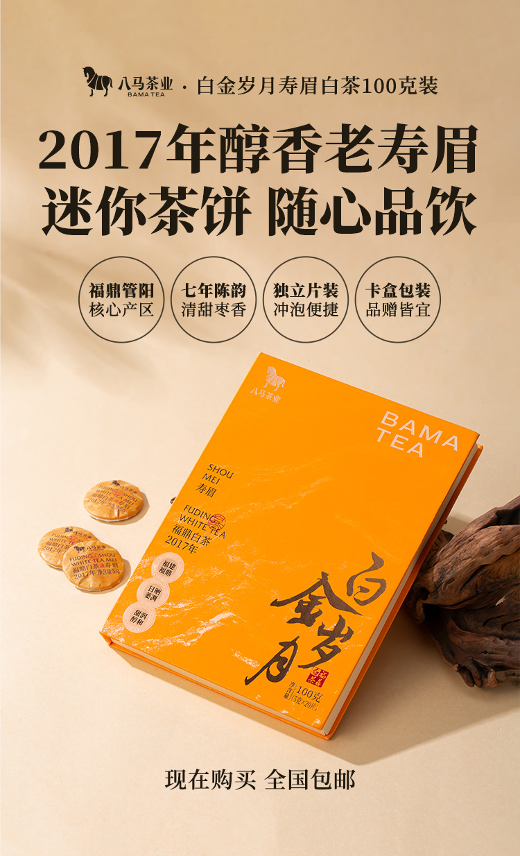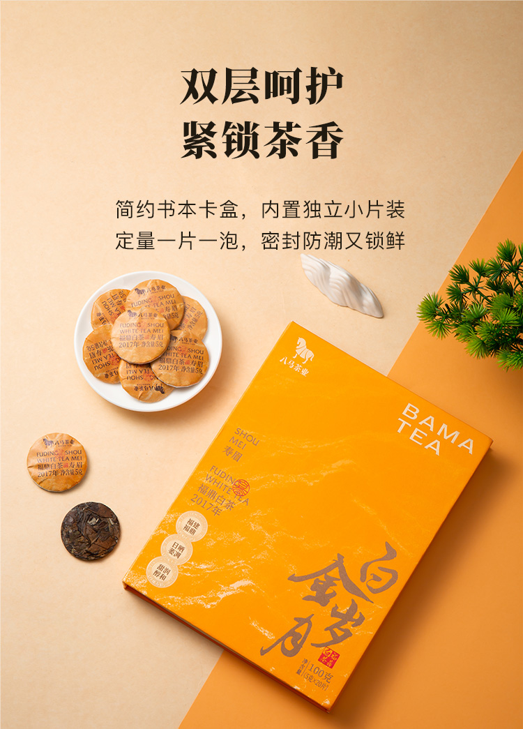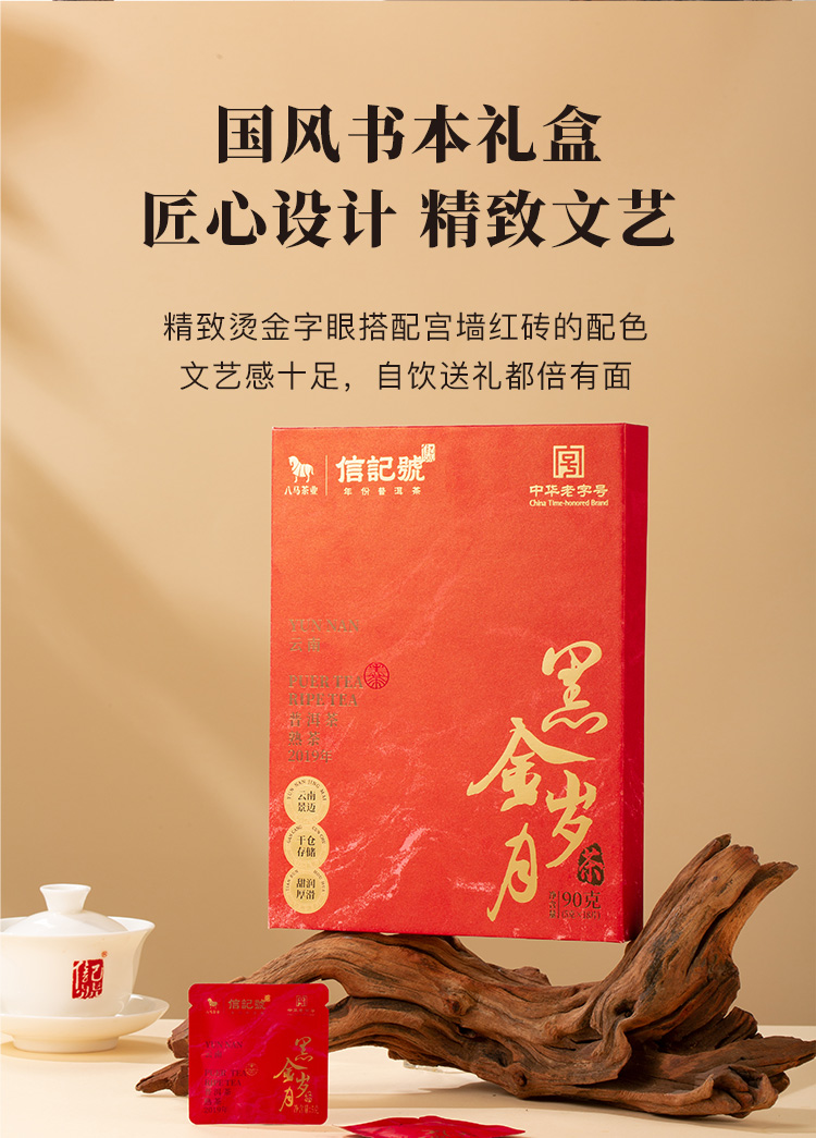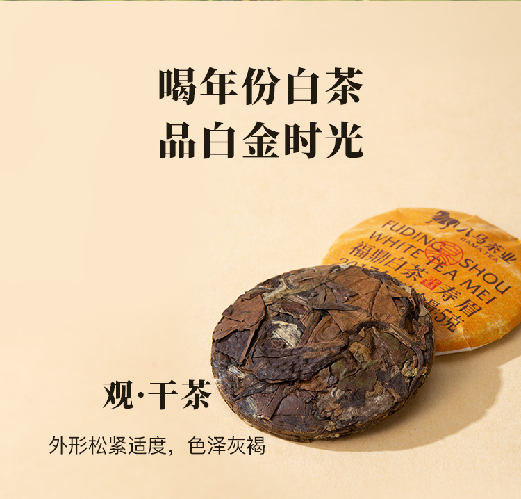 八马茶业|信记号黑金岁月普洱熟茶90g+福鼎白金岁月寿眉白茶100g