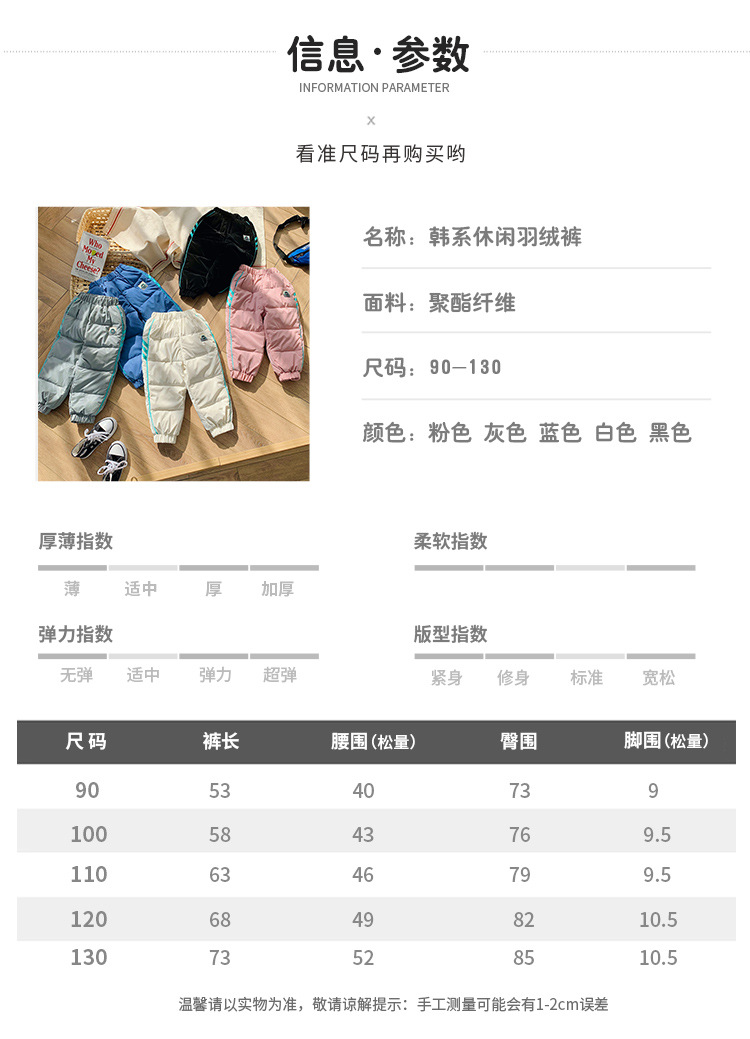 【时尚休闲】韩系儿童羽绒裤新款男童保暖裤女童加厚冬季宝宝外穿中小童长裤子