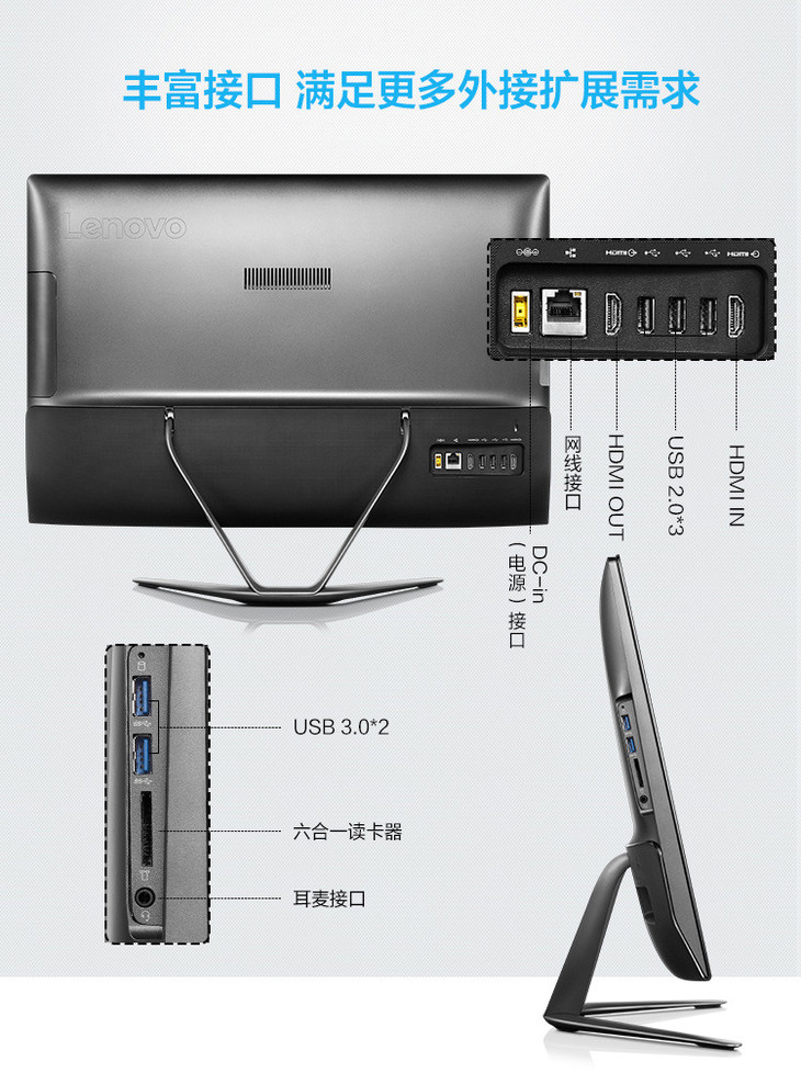 【联想 】*联想Lenovo AIO 300 23英寸 台式一体电脑 I5 7200U 8G 1T 2G独显