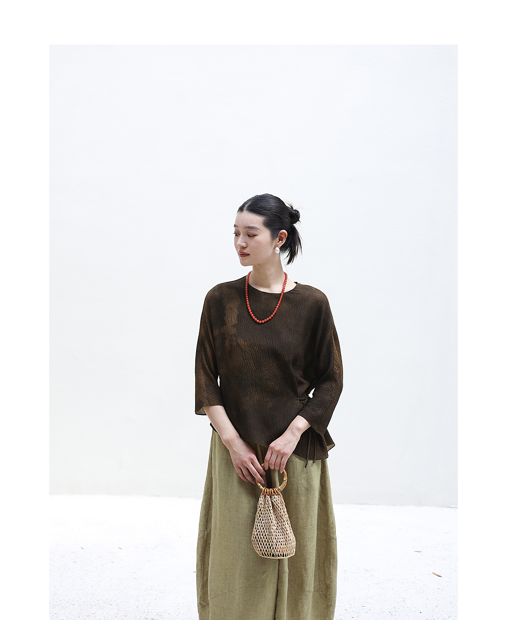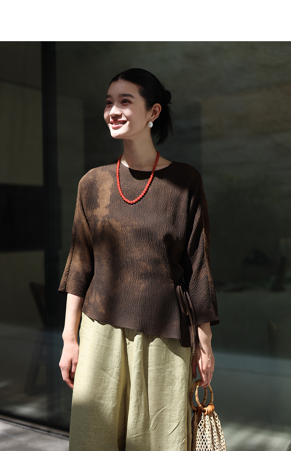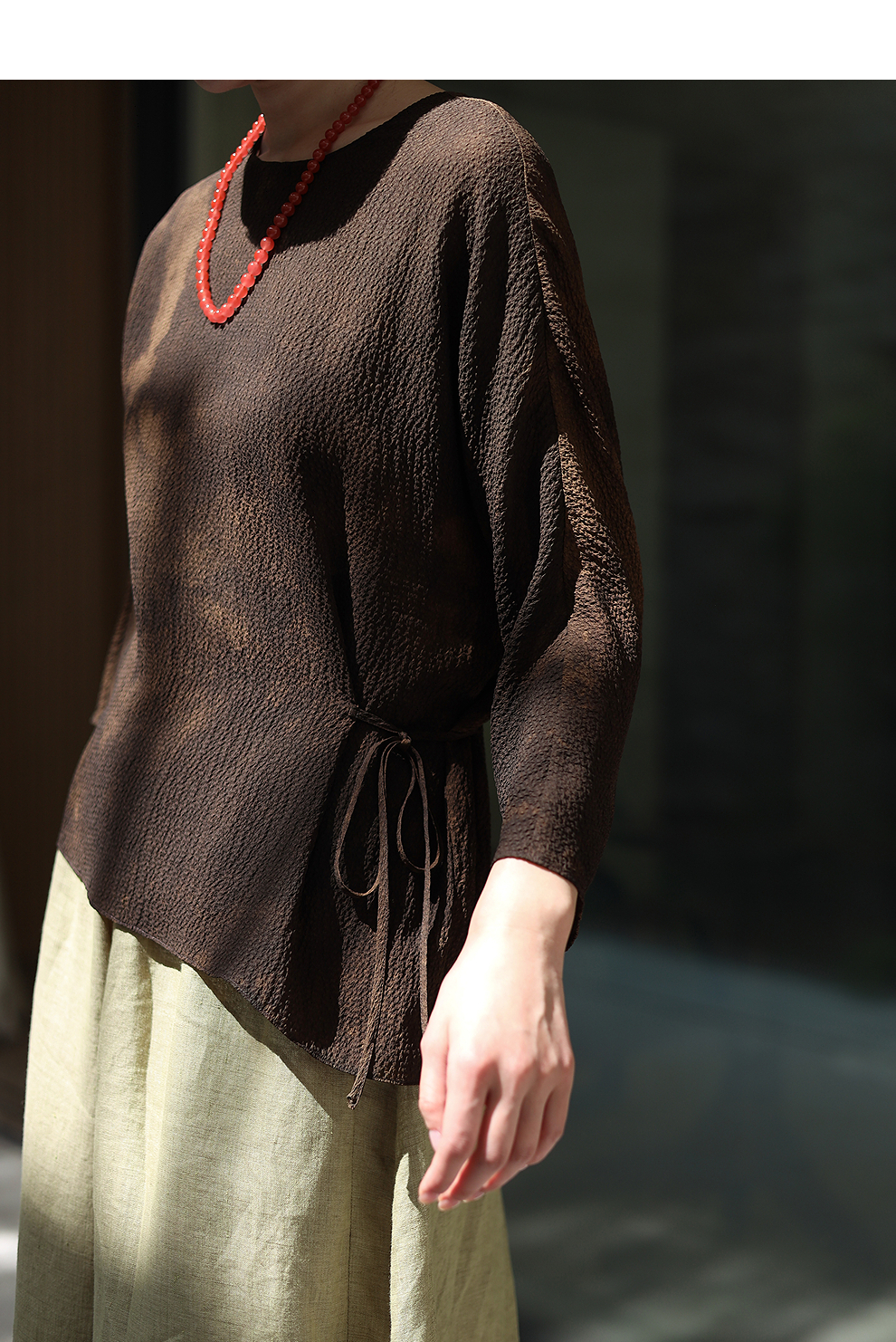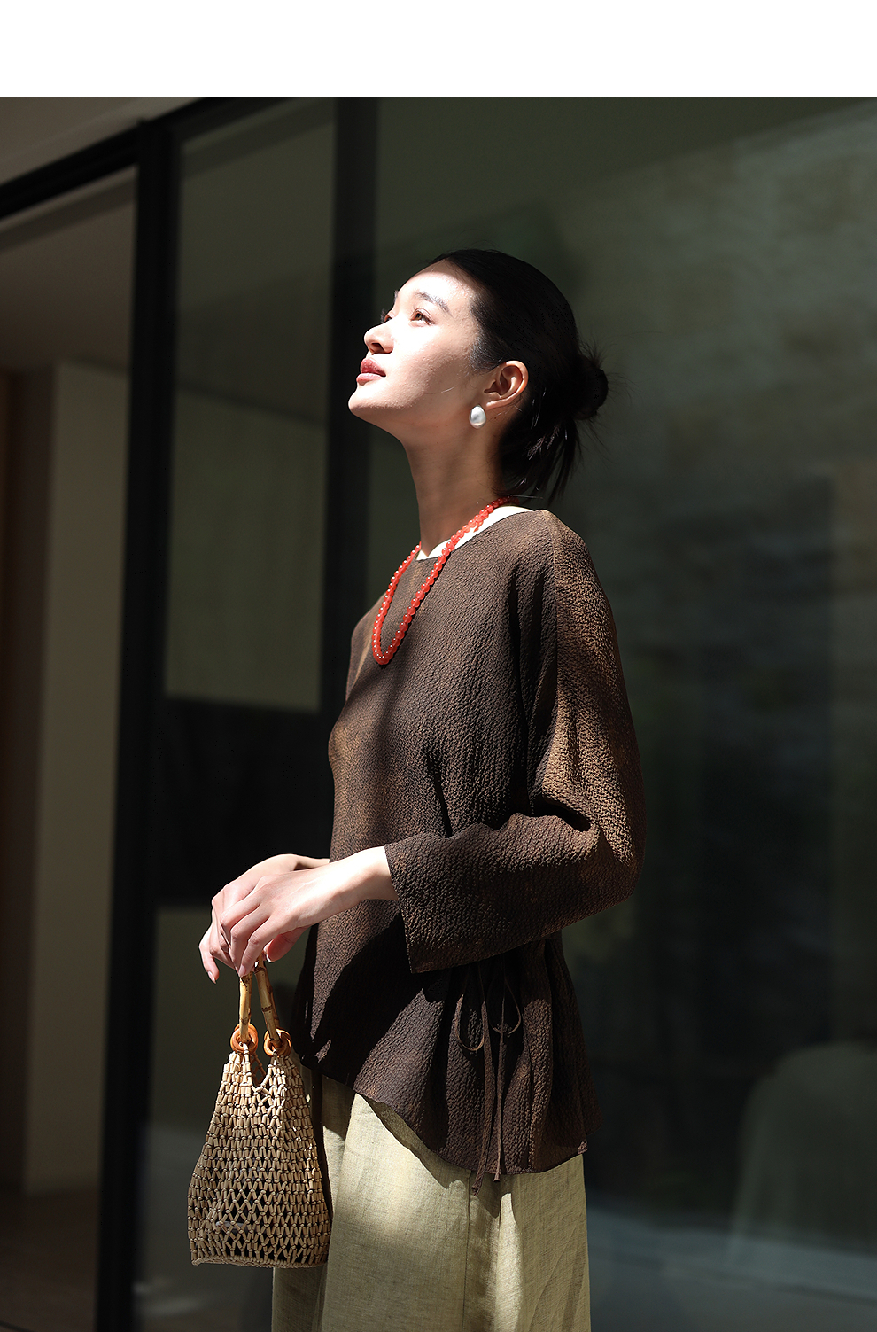 绽放185朵/【宋瓷系列】桑蚕丝红茶植物染香云纱肌理感系带小衫
