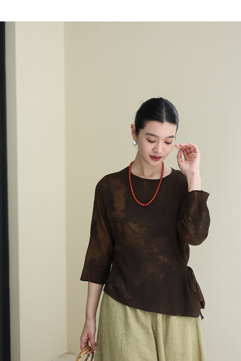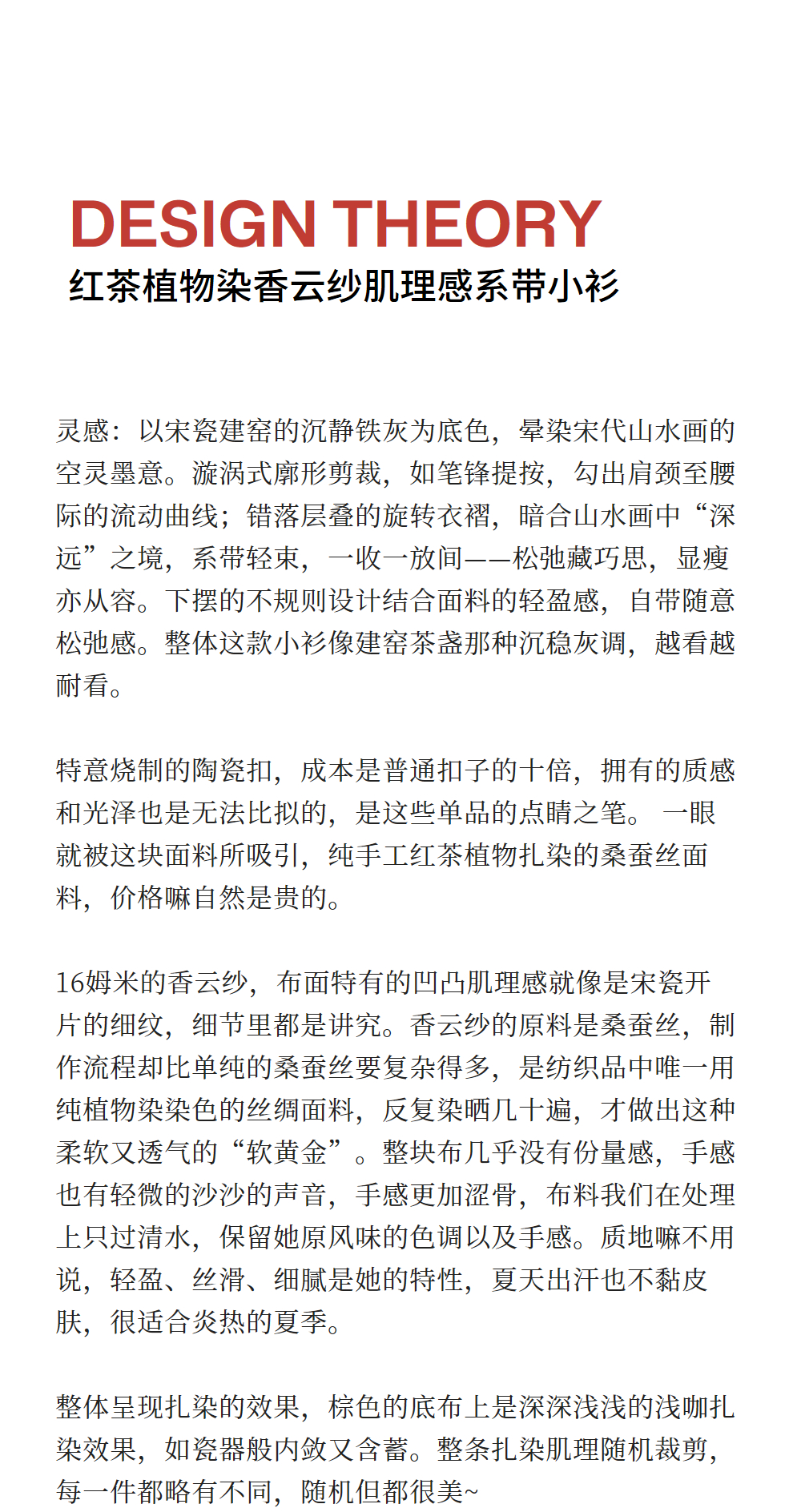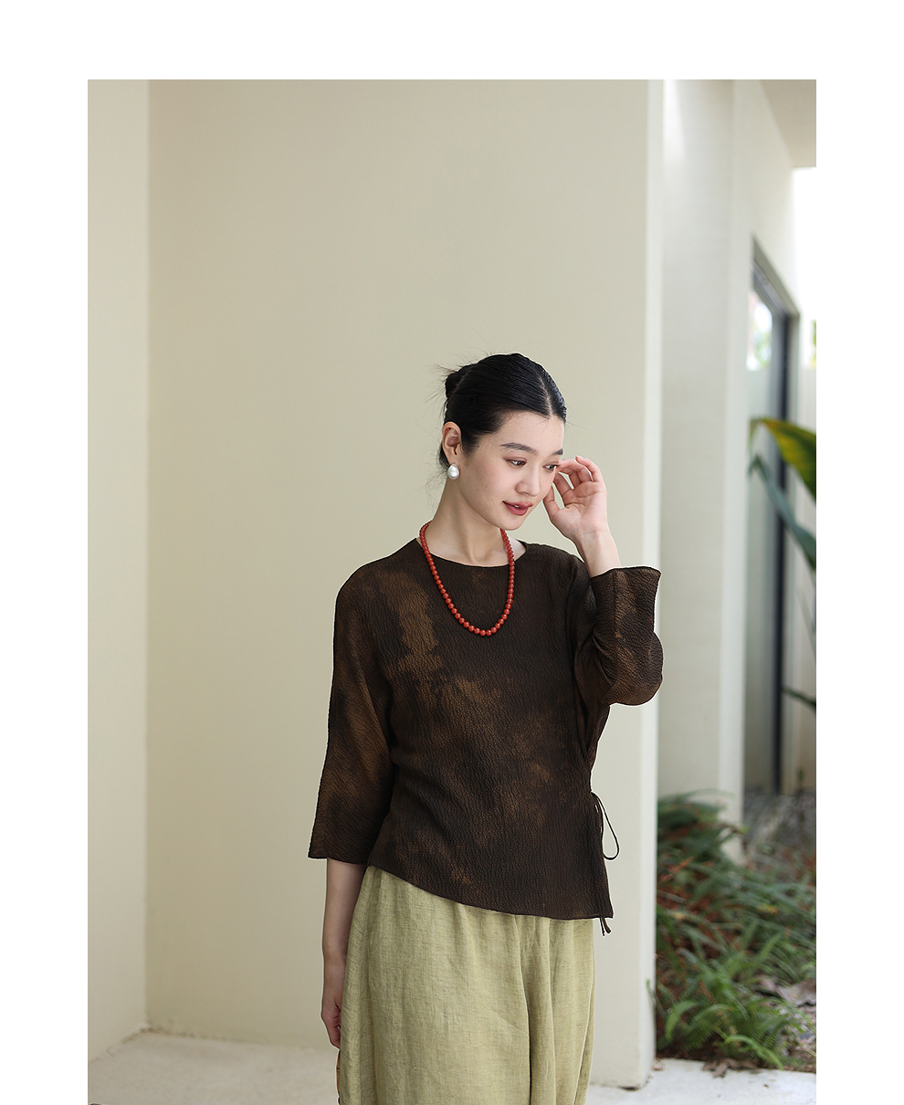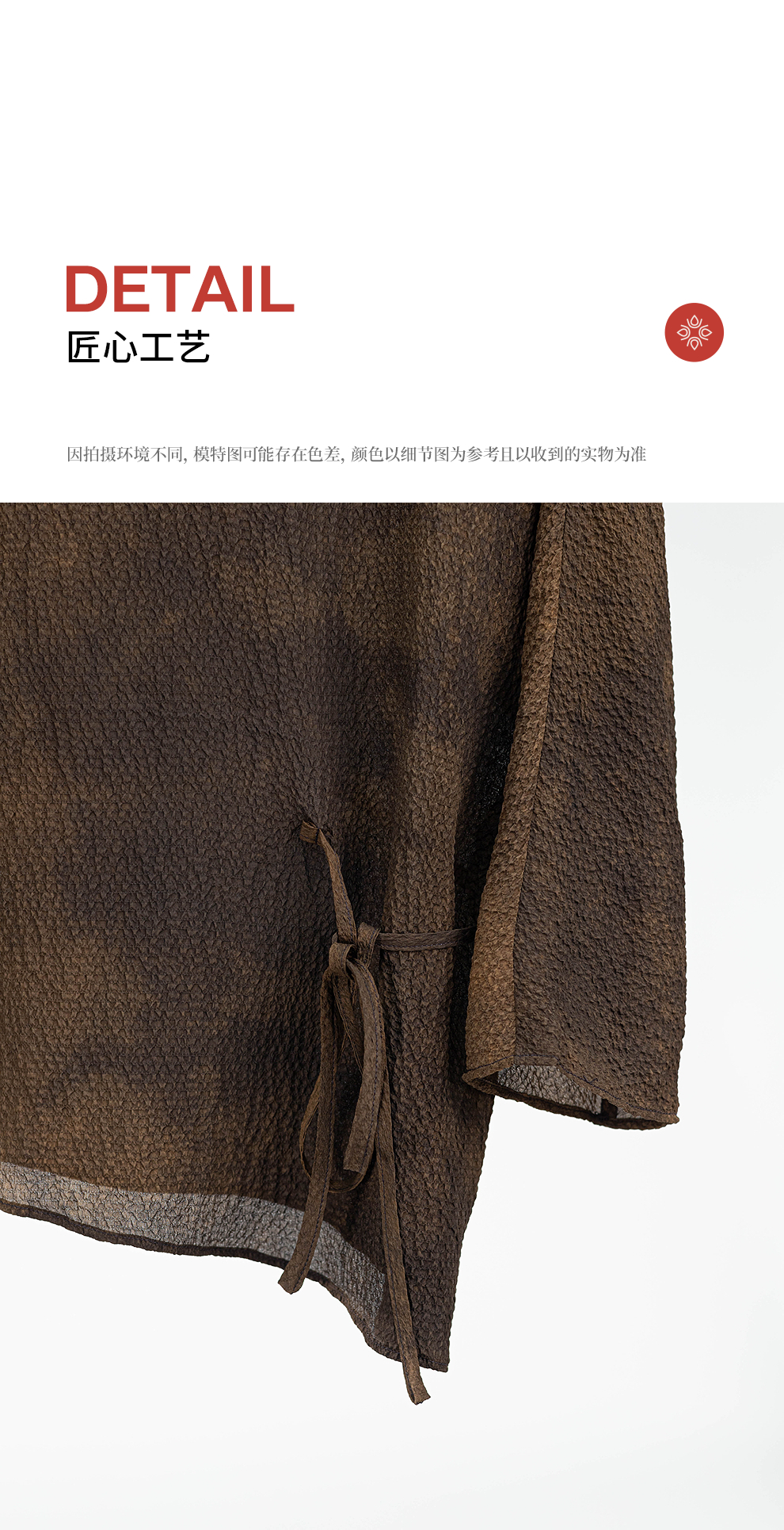 绽放185朵/【宋瓷系列】桑蚕丝红茶植物染香云纱肌理感系带小衫