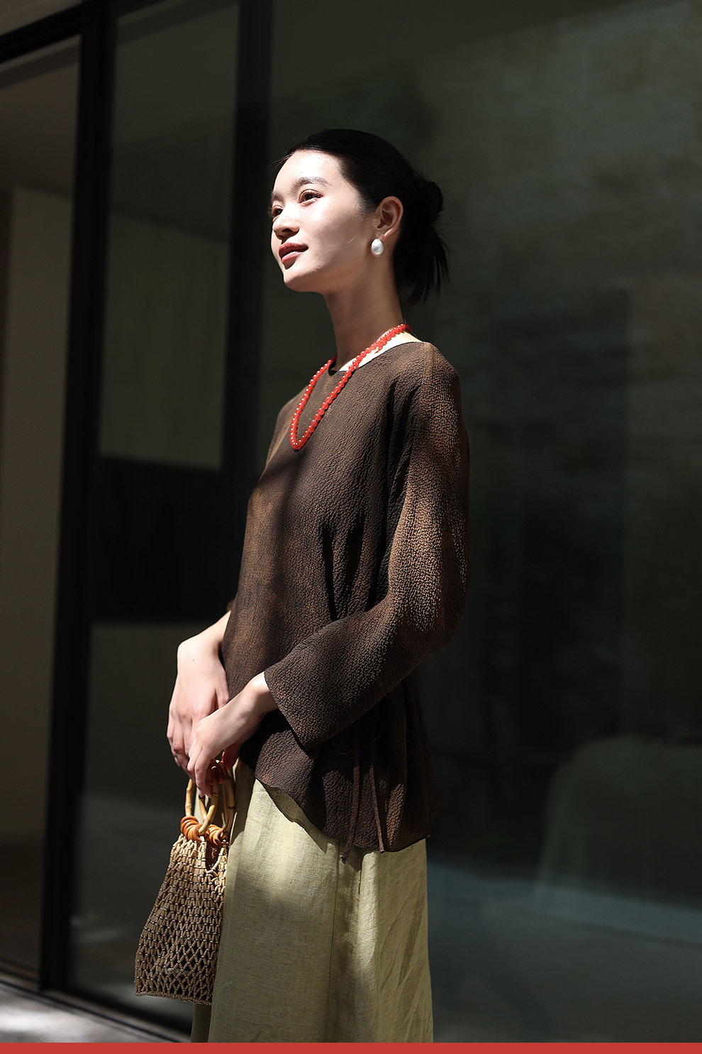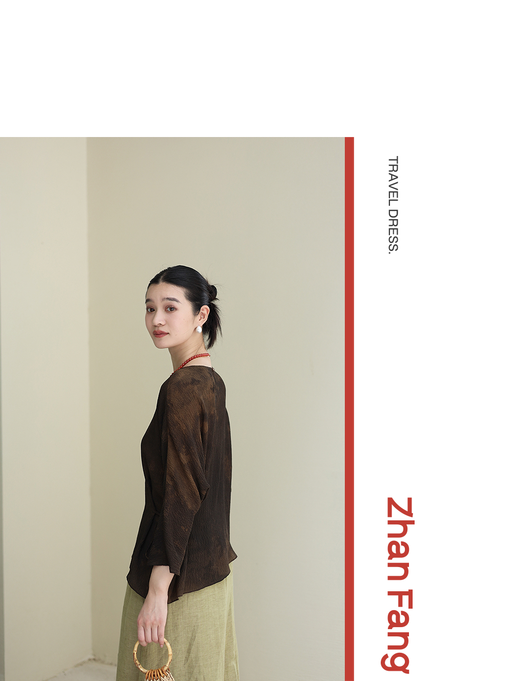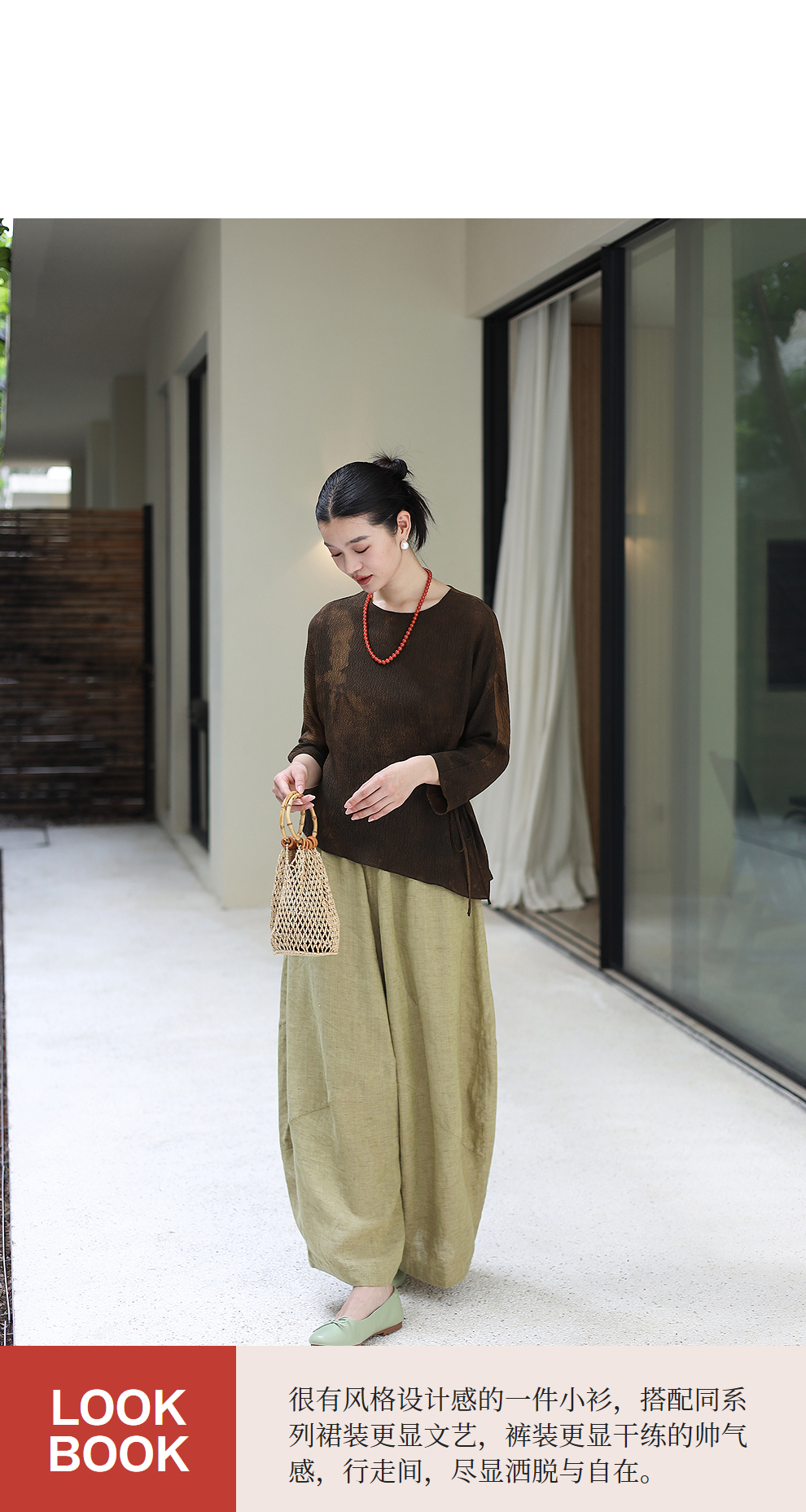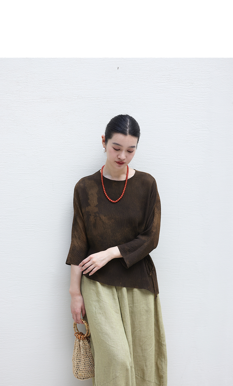 绽放185朵/【宋瓷系列】桑蚕丝红茶植物染香云纱肌理感系带小衫
