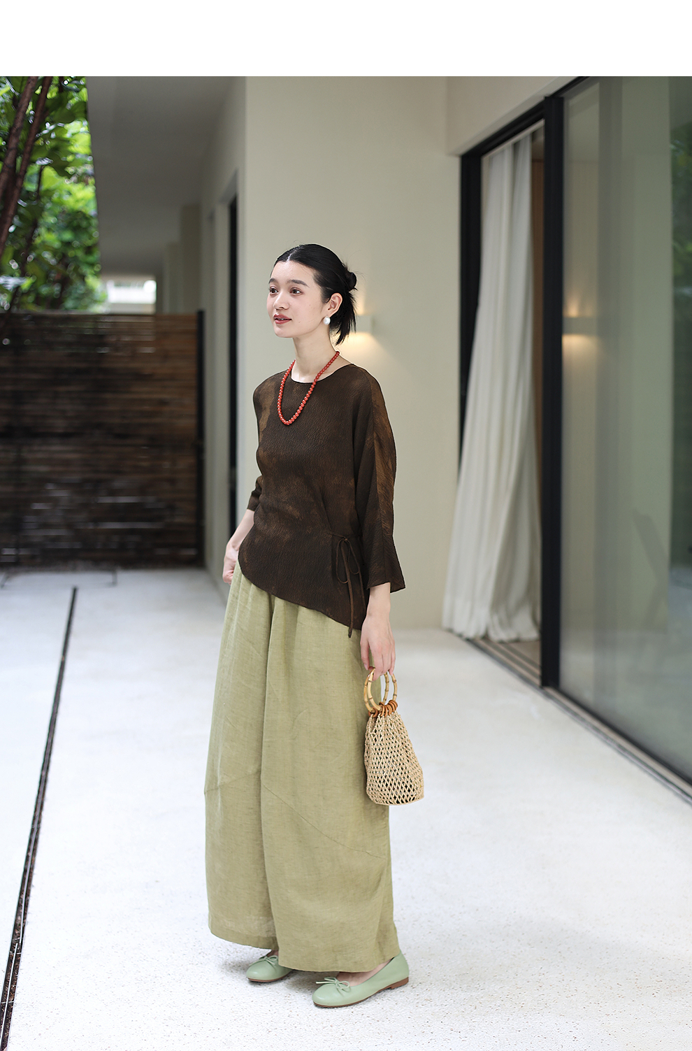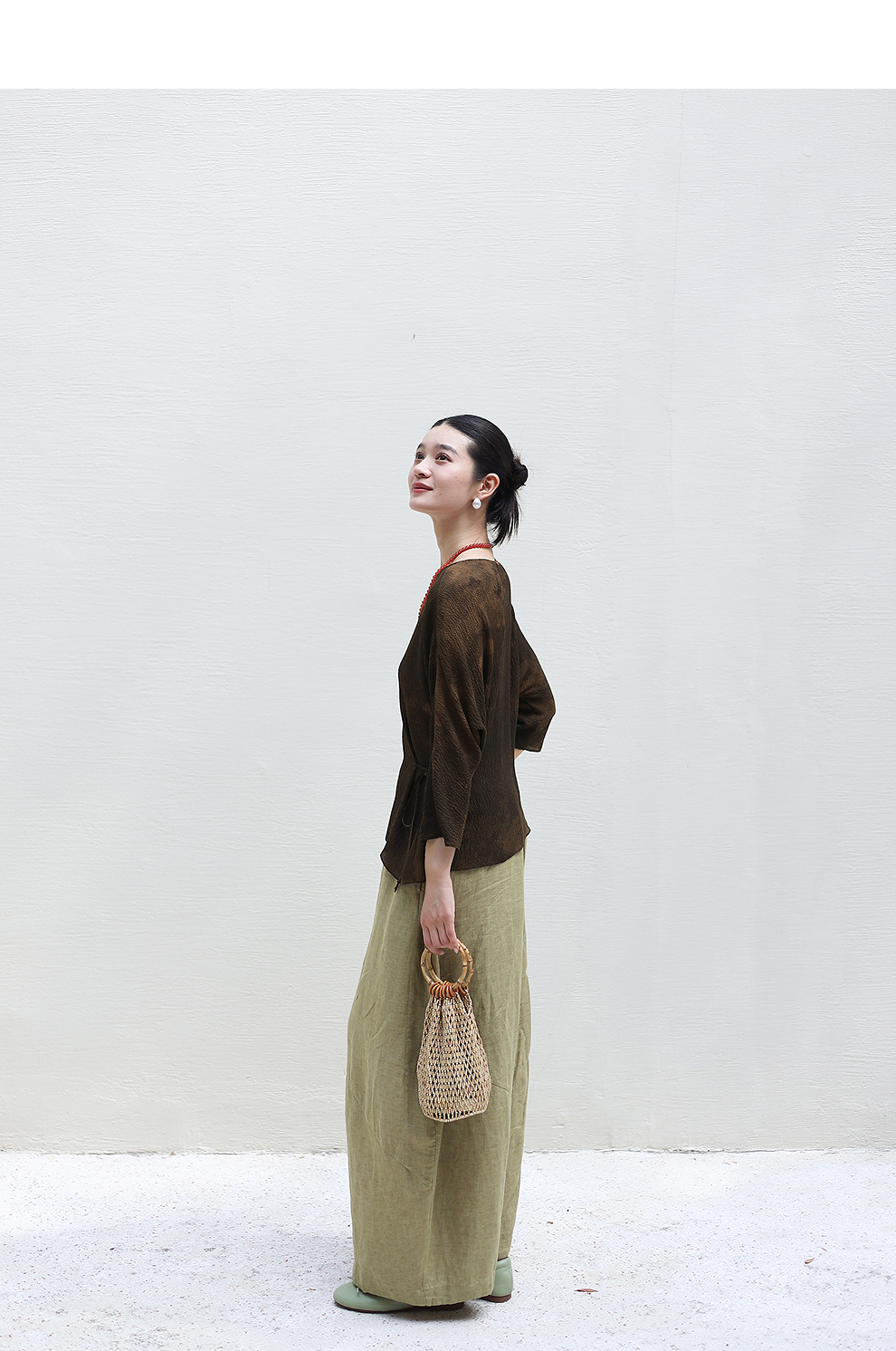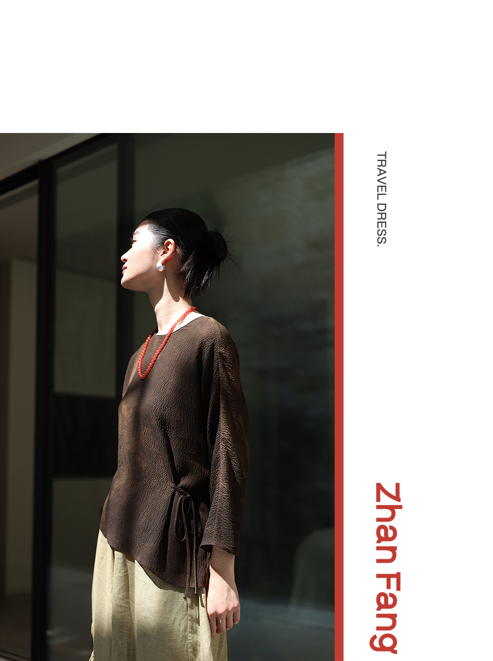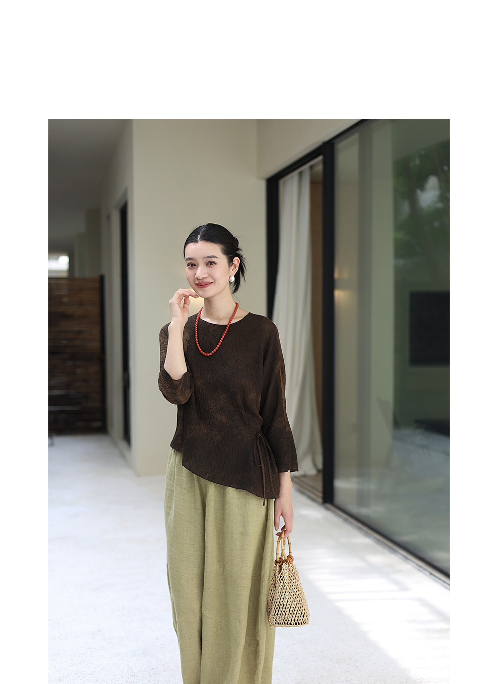 绽放185朵/【宋瓷系列】桑蚕丝红茶植物染香云纱肌理感系带小衫