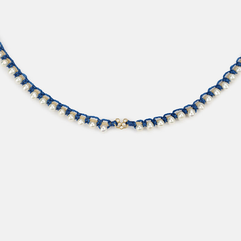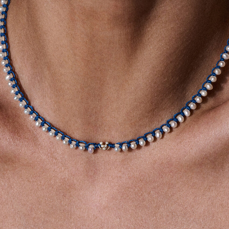 订购10周到|CHRISTIANA KAFA-mount v-海蓝色线 钻石 白色淡水珍珠 项链[希腊设计师]