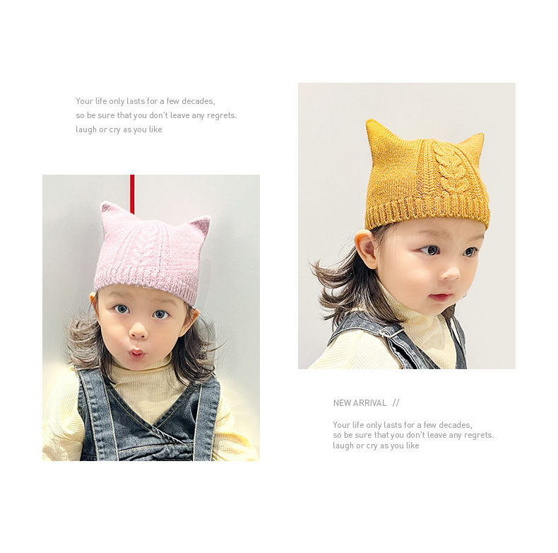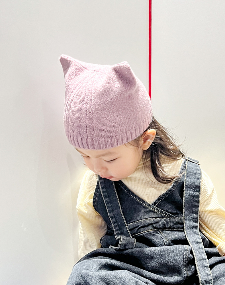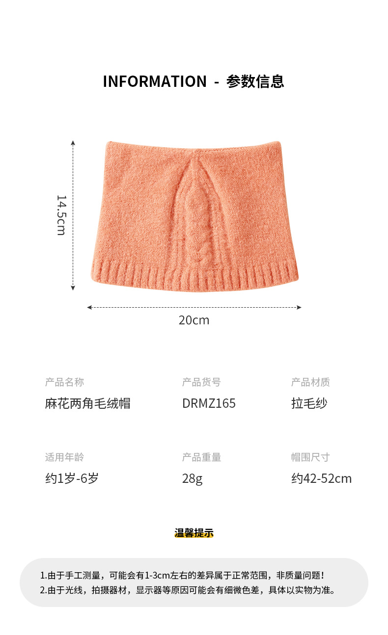 【亲子款 麻花两角毛绒帽】冬季保暖防寒护耳针织羊绒儿童帽子女可爱兔耳朵毛线帽时尚防寒