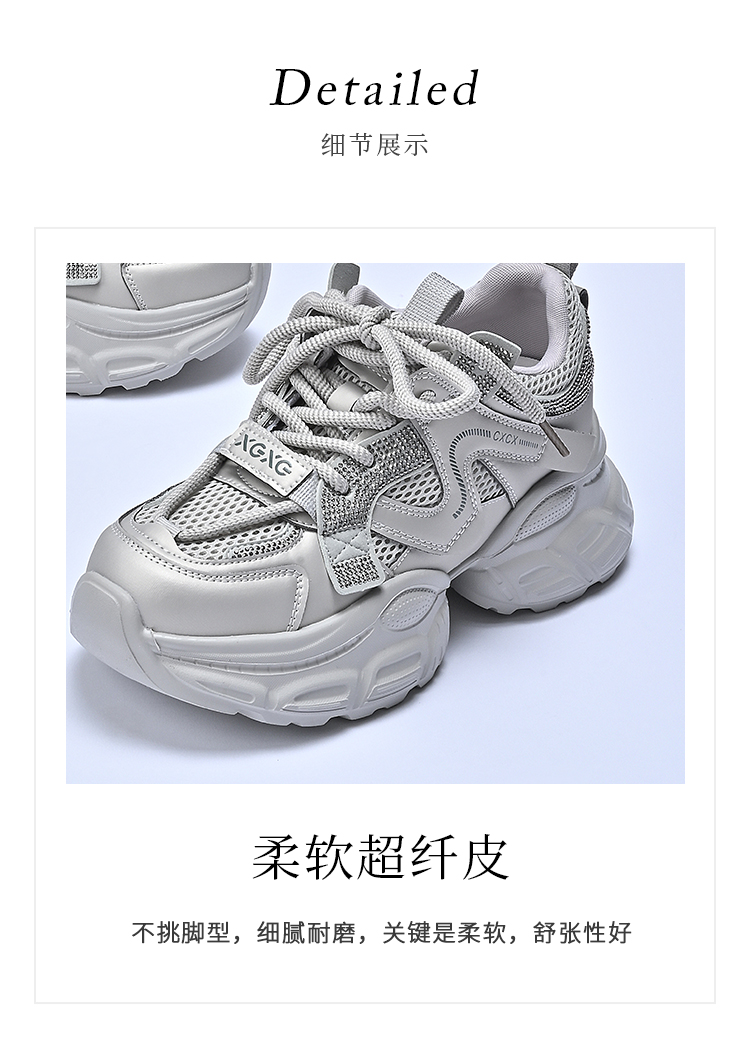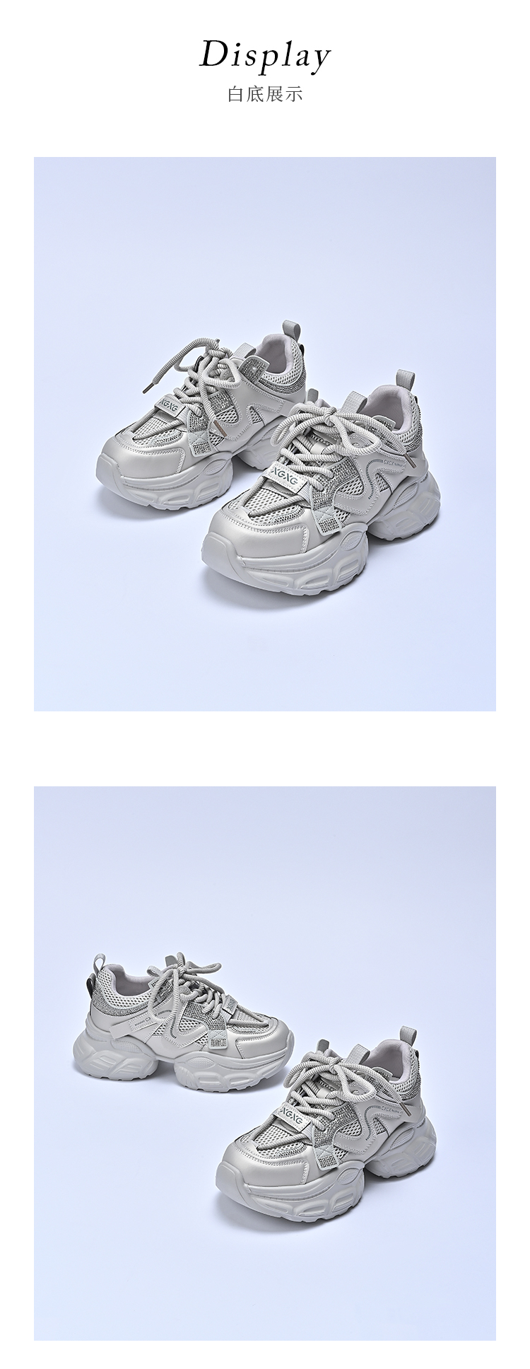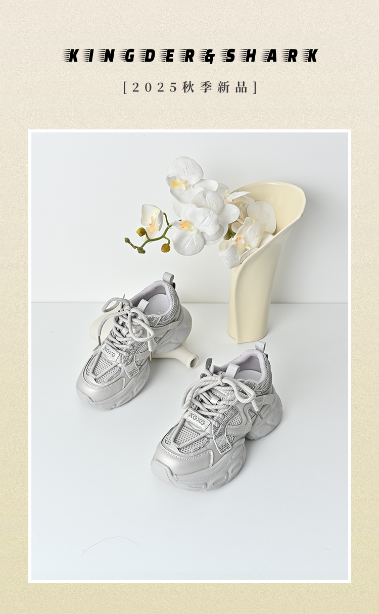 经典鲨2025秋专柜款时尚潮流网面透气显高跑步休闲老爹鞋女KW219-537091