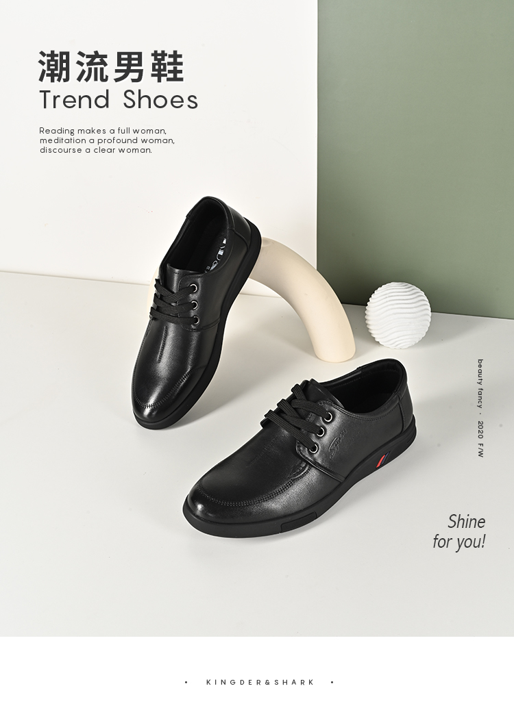 2024年经典鲨夏季新款正装平底舒适系带商务男士休闲皮鞋KC68-D14011