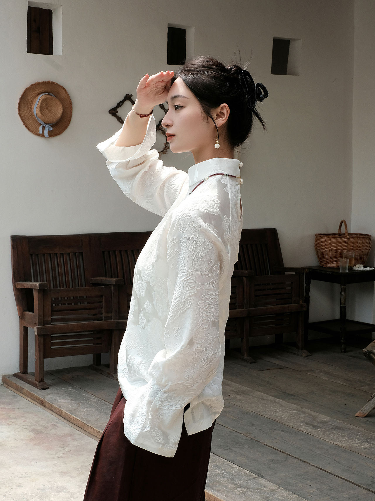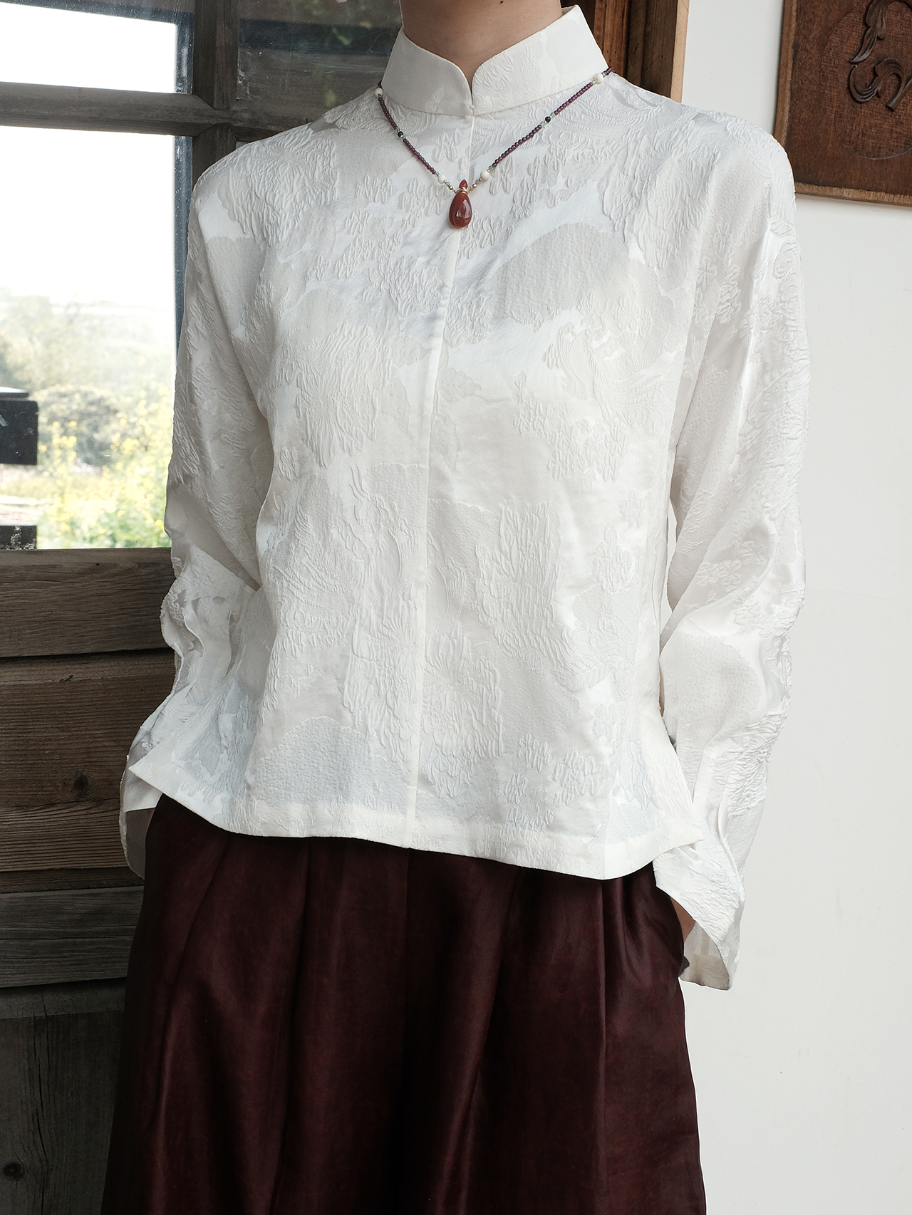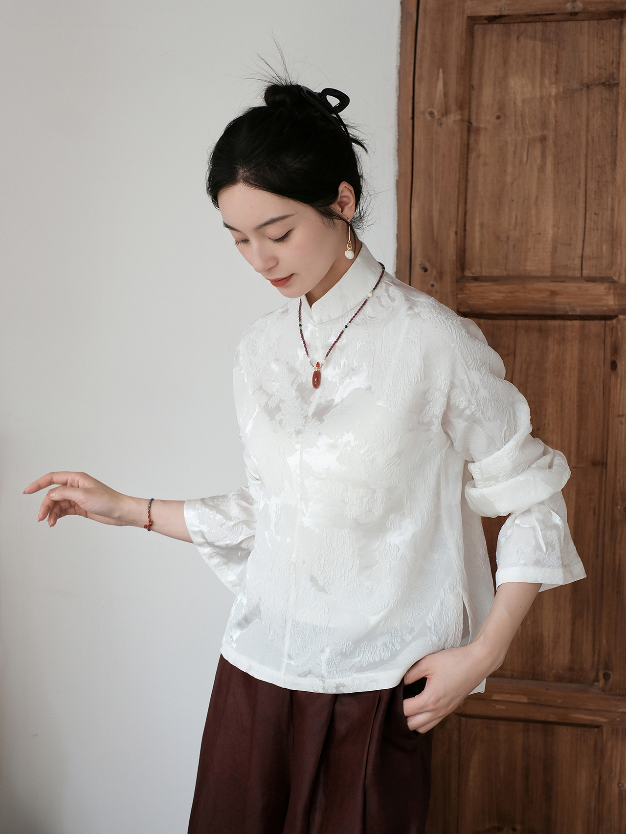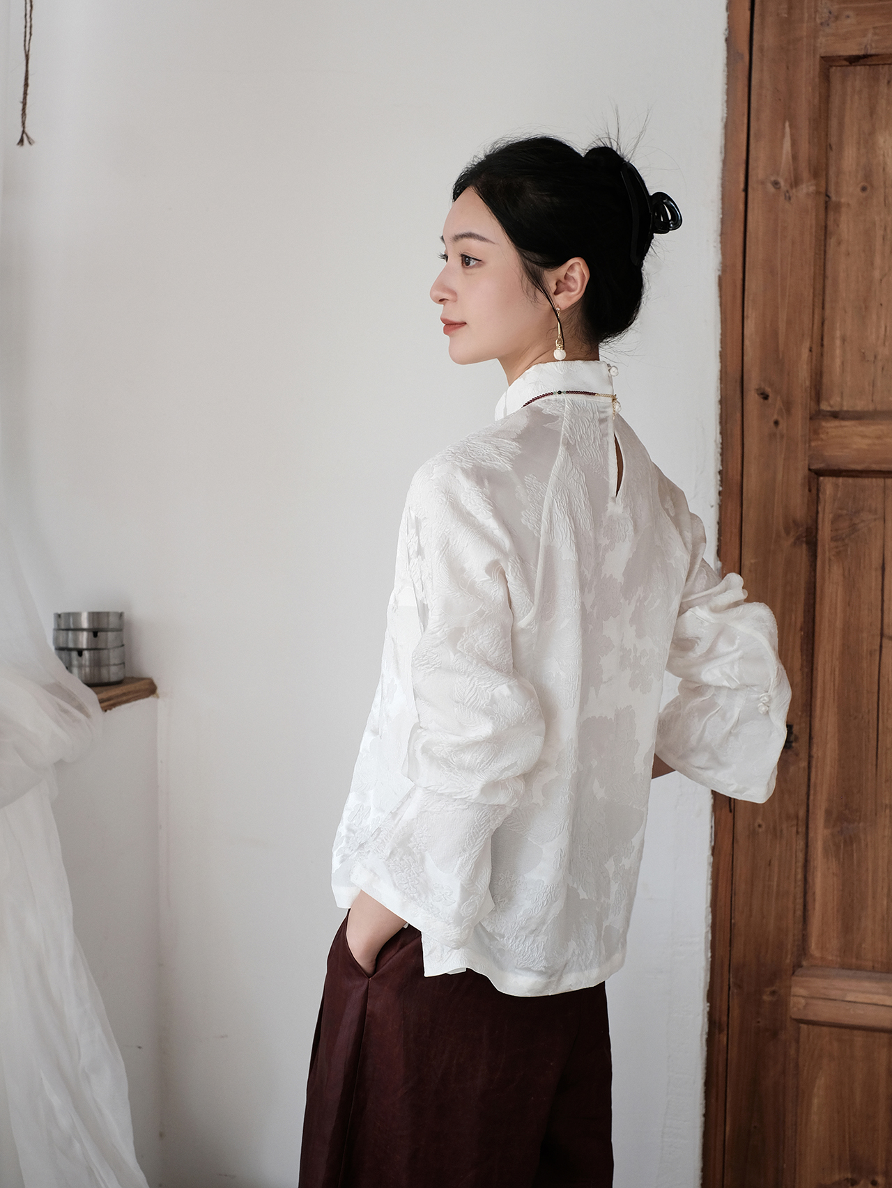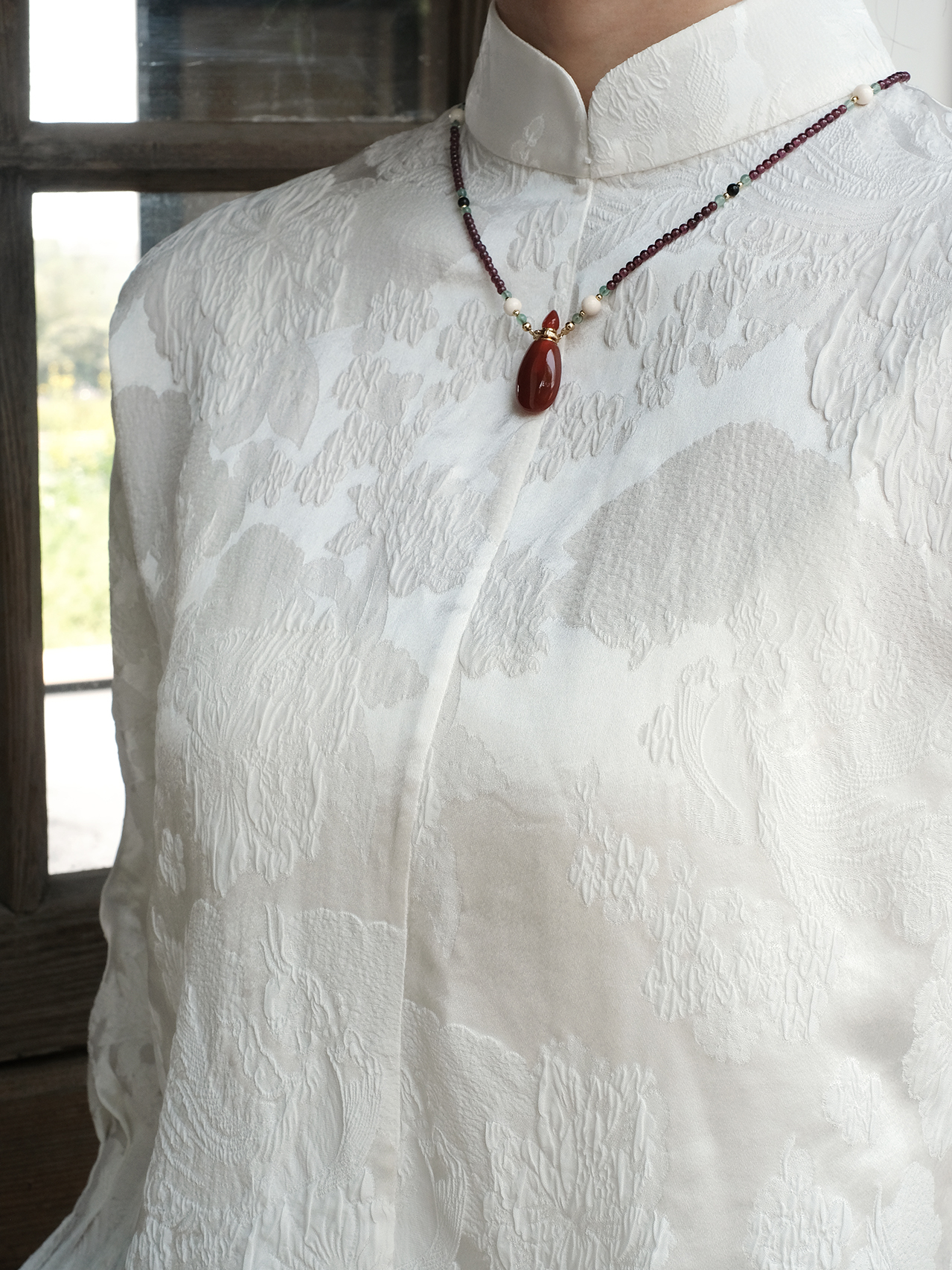 盛唐牡丹 | 珍珠白凤凰纹冠乐绉女上衣