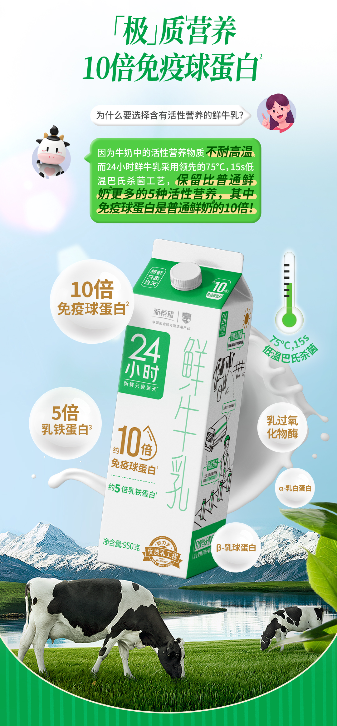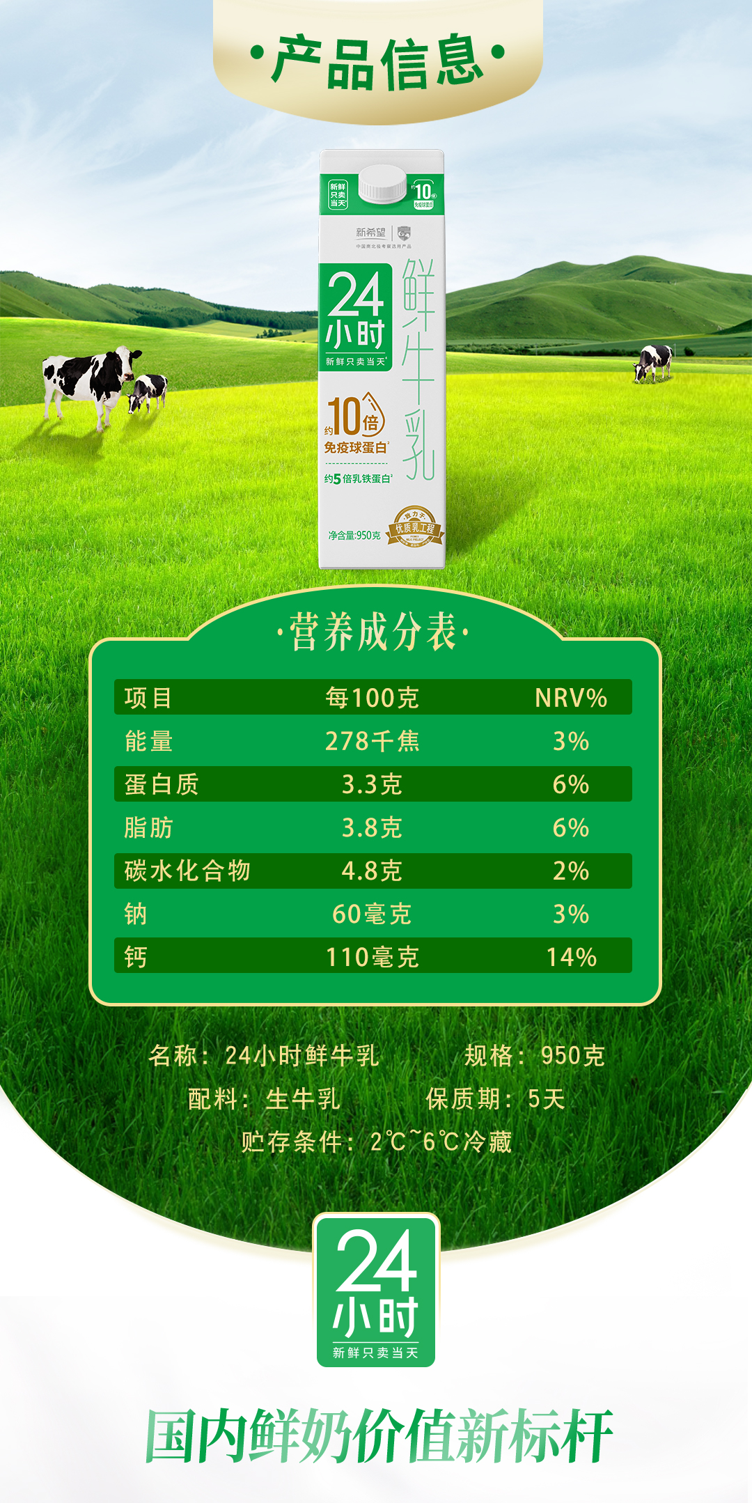 【会员秒杀】24小时鲜牛乳 | 屋顶盒950g 7盒