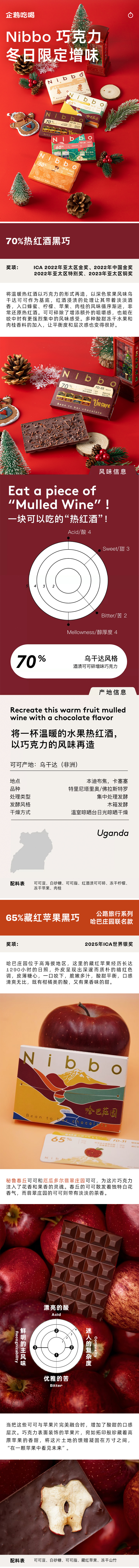 企鹅市集|Nibbo冬日限定増味巧克力45g 国产先锋精巧品牌 热红酒/牦牛奶酪/姜饼/藏红苹果/香野草莓/玛萨拉奶茶 精品巧克力