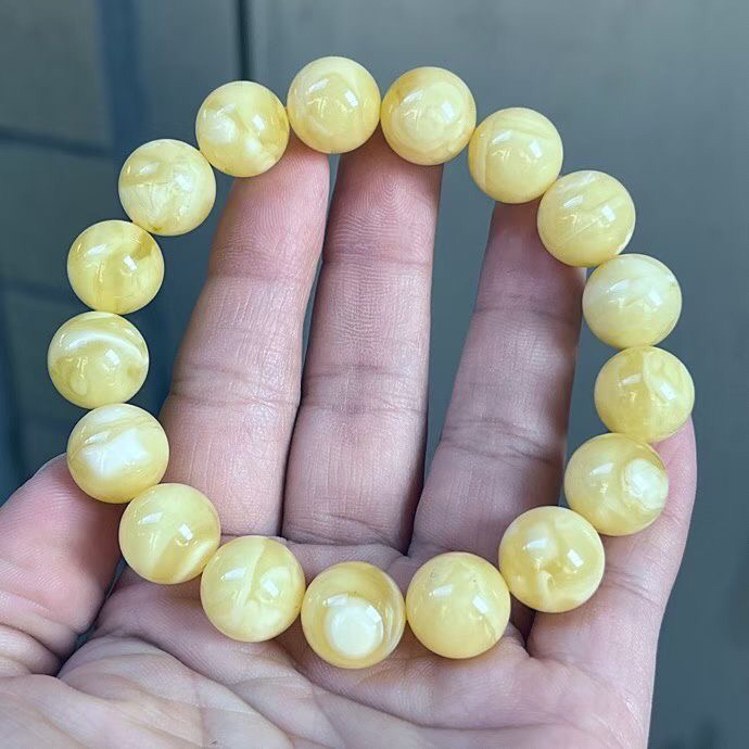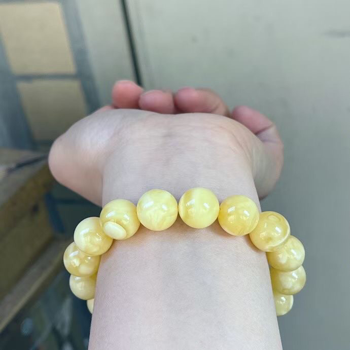 精品俄料满蜜白花蜡圆珠手串,阿尔卑斯蜡质浓郁,妖白花蜜纹清晰漂亮,上手佩戴大方漂亮!全品无优化!