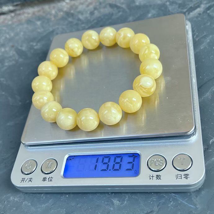 【青山特惠】12.8*17颗 精品原矿俄料 满蜜白花蜡圆珠蜜蜡手串 19.83克 m168