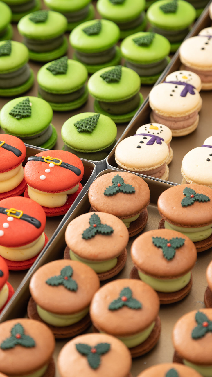 为了迎合圣诞气氛,马卡龙饼皮上是手工制作的造型糖霜和干佩斯,圣诞风扑面而来~让2020年的圣诞节更有仪式感吧!