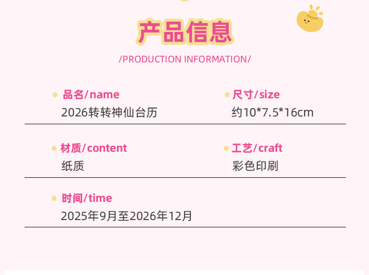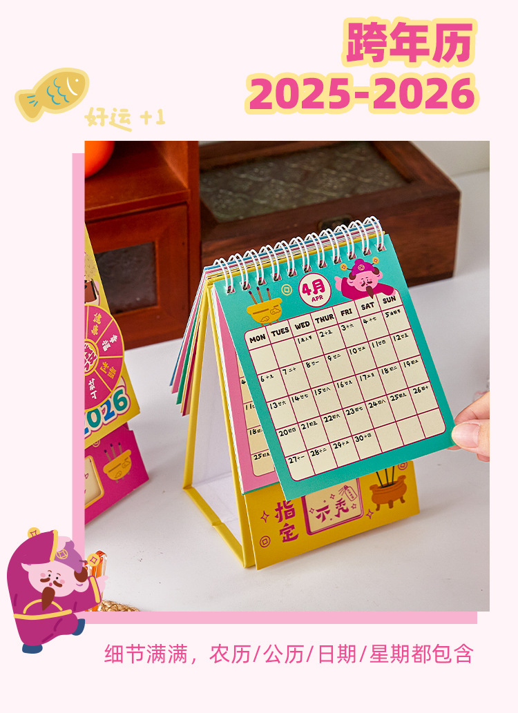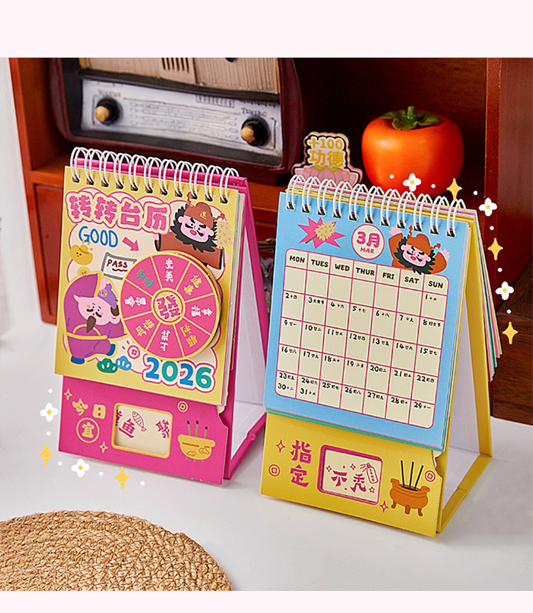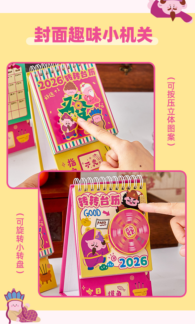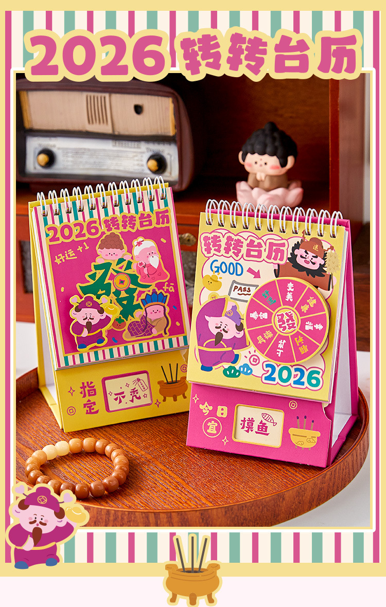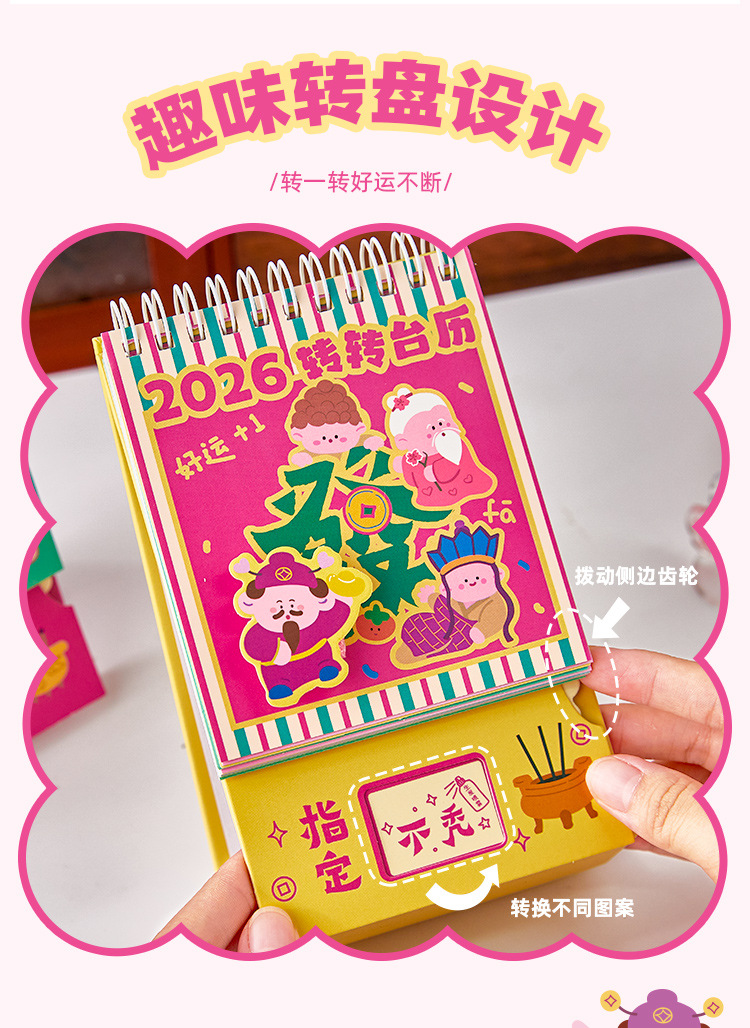 【趣味转盘❗️2026新款转转台历】转一转好运不断,(可旋转小转盘),厚实纸张,双线圈设计,三角底座,打工人小摆件国风卡通日历QQ2026马年新年款