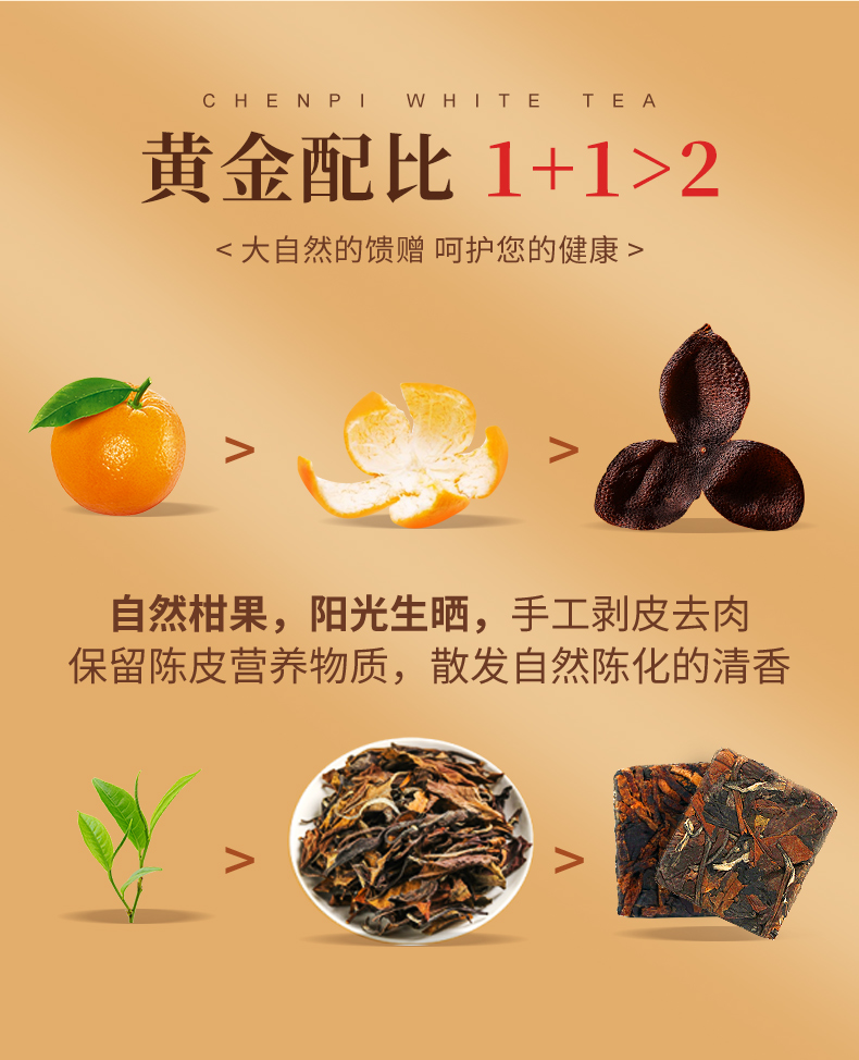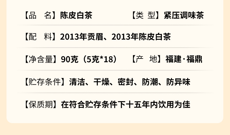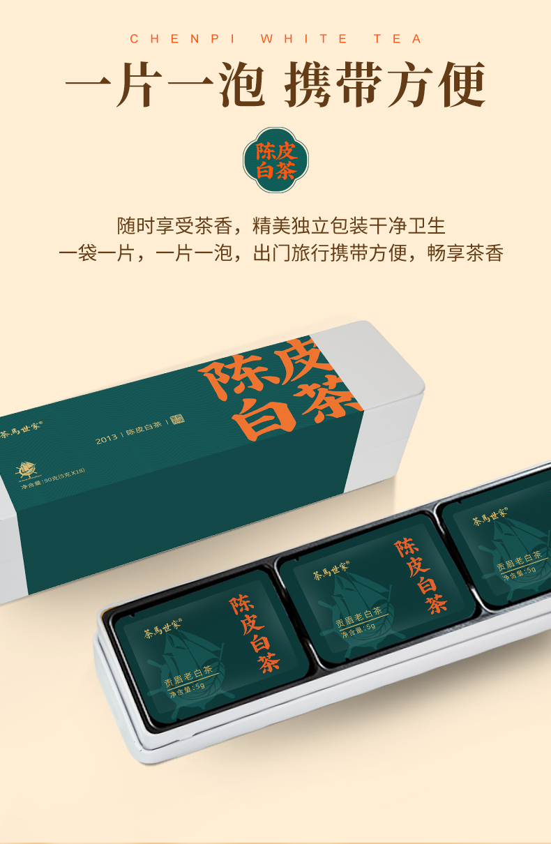 【双10年地标】茶马世家陈皮白茶正宗新会陈皮福鼎2013年贡眉老白茶方片90g