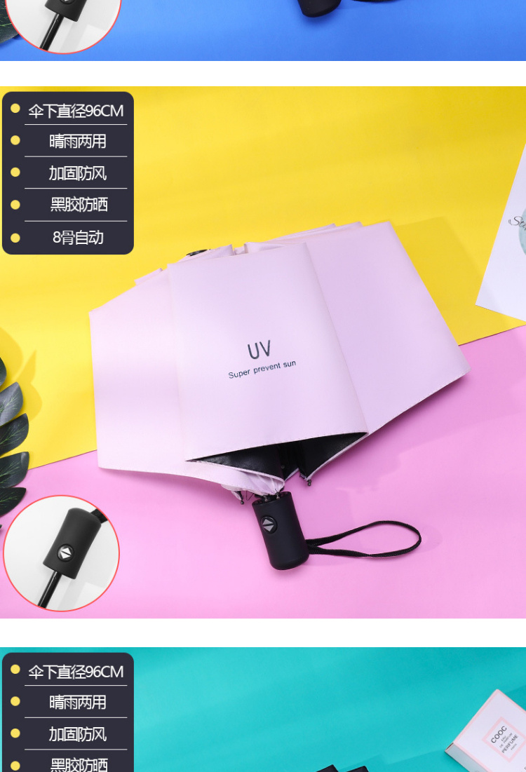 【雨伞】other 纯色夏季三折伞防紫外线遮阳伞