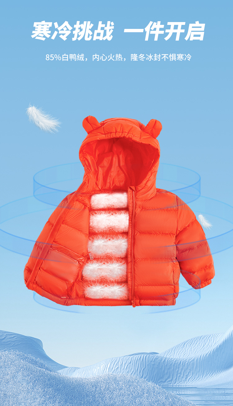 贝贝怡童装秋冬保暖羽绒服男女童轻盈时尚外套224S3052
