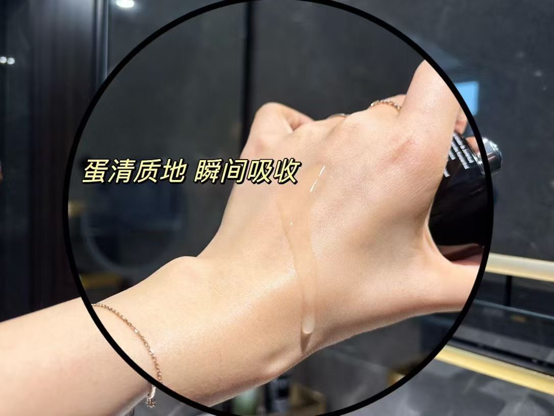 清爽的蛋清质地,抹开皮肤一下就吃进去了!平常早晚各来一泵就行~坚持一瓶用下来,小脸水润润的,就算熬了夜,脸也不会暗沉发黄,肉眼可见的细腻!透亮!