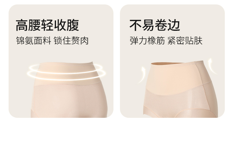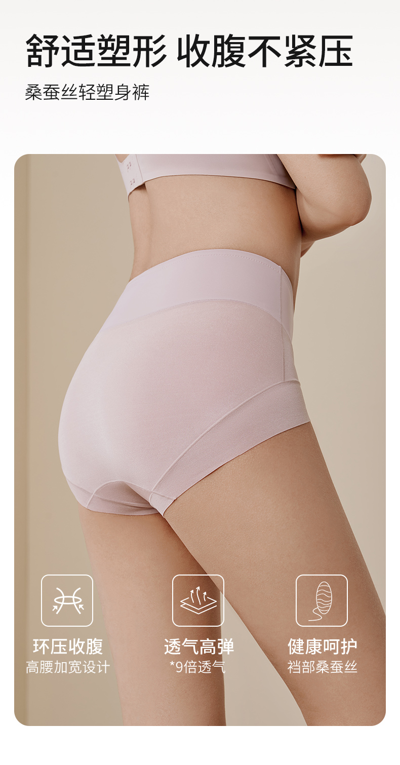 金三塔桑蚕丝轻塑身内裤女透气高弹轻收腹高腰内裤无痕透气内衣 NZFFD202