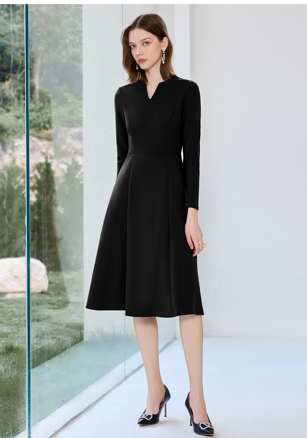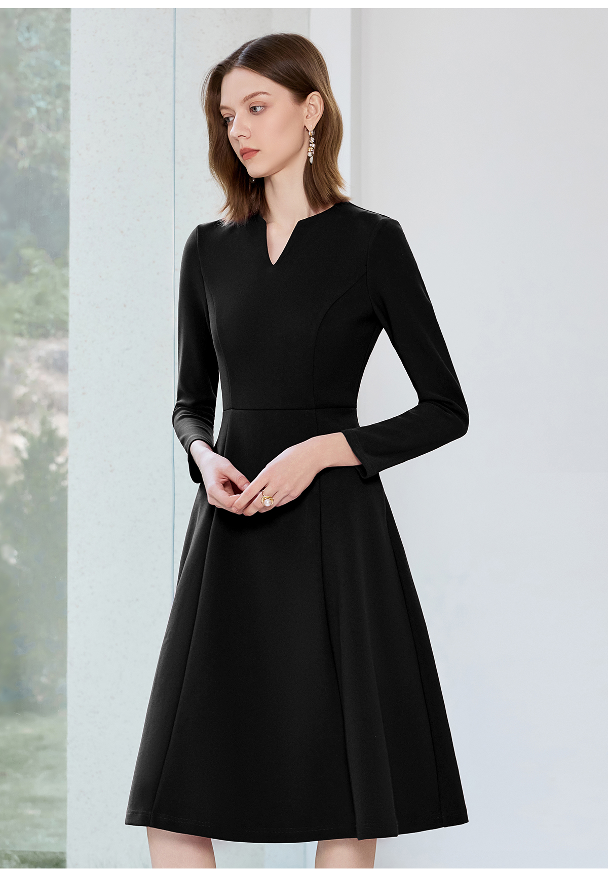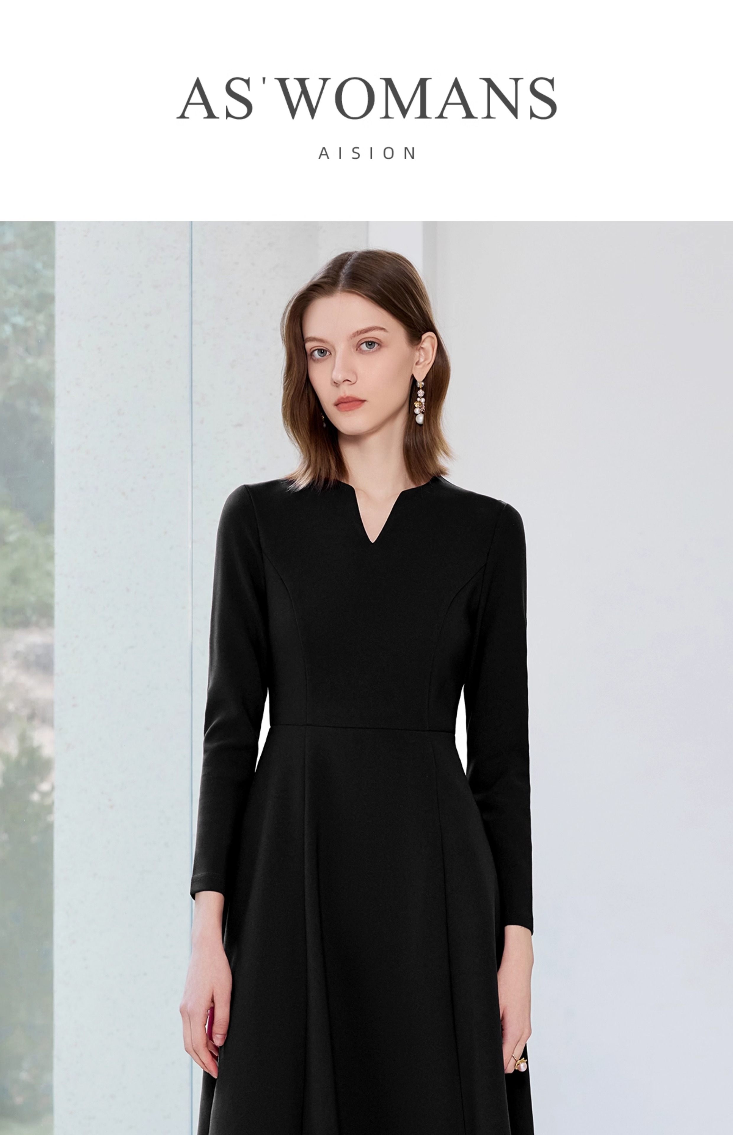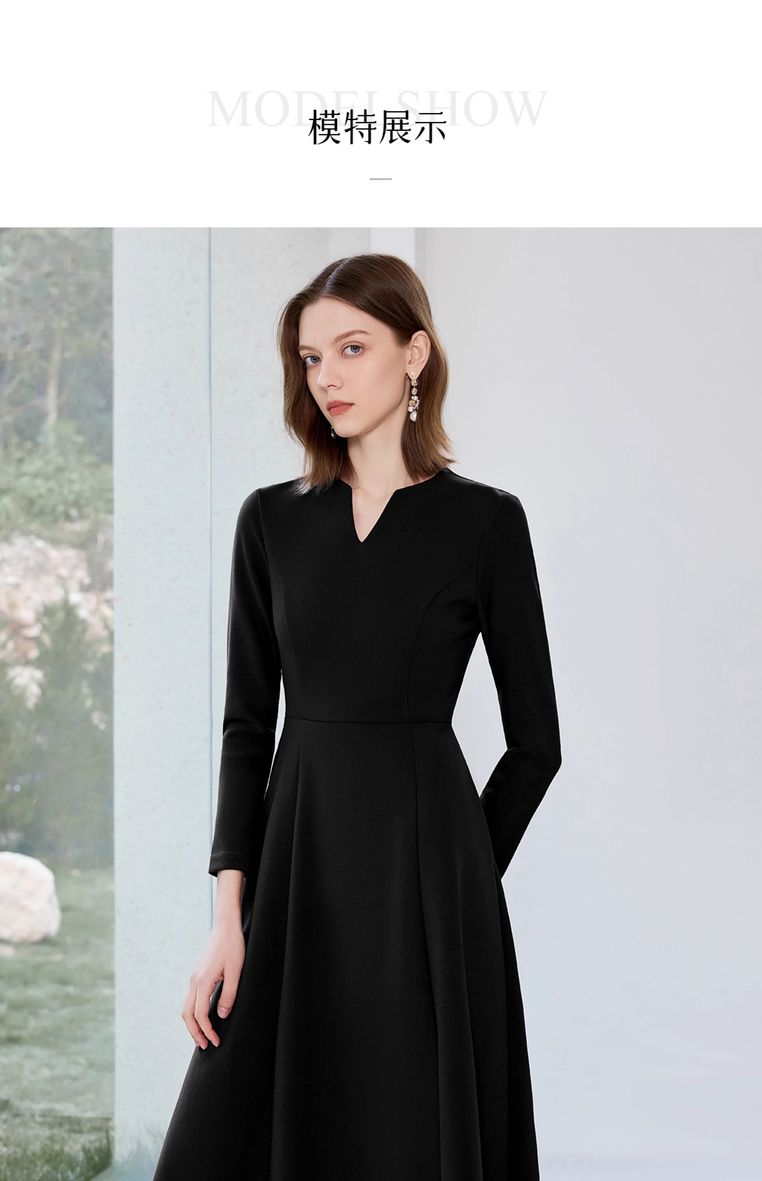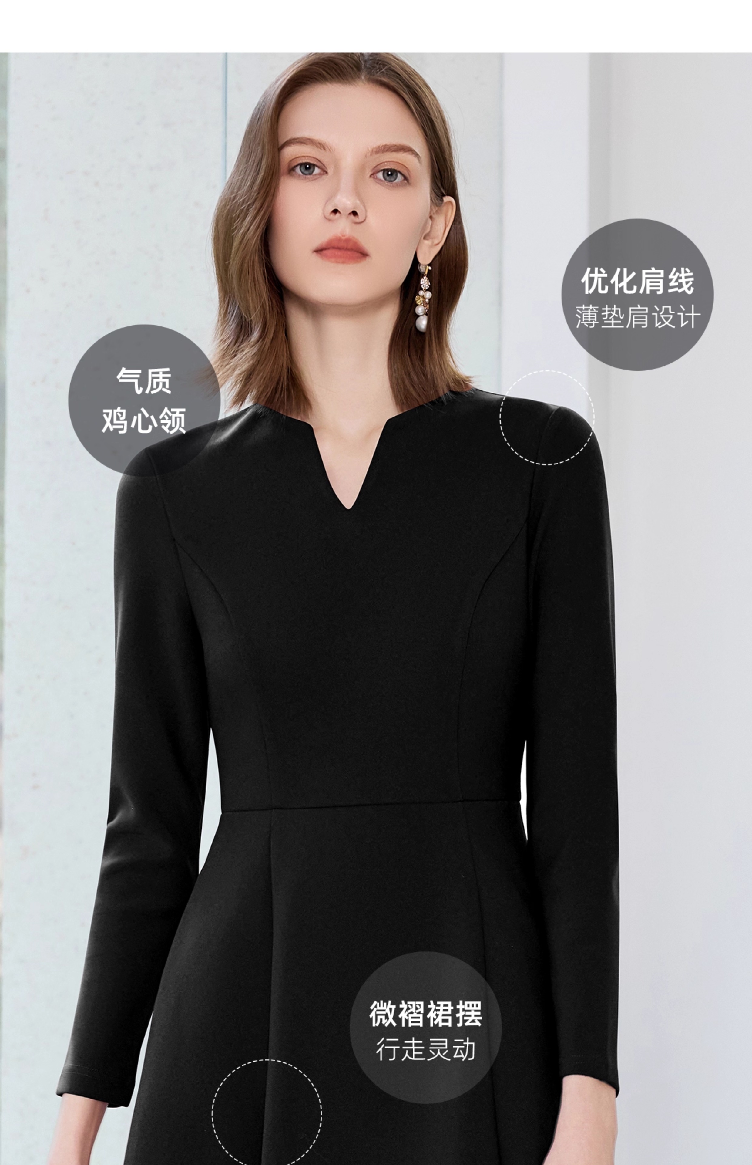 艾尚臣黑色西装连衣裙女早秋小黑裙收腰显瘦大摆裙售楼部工作服