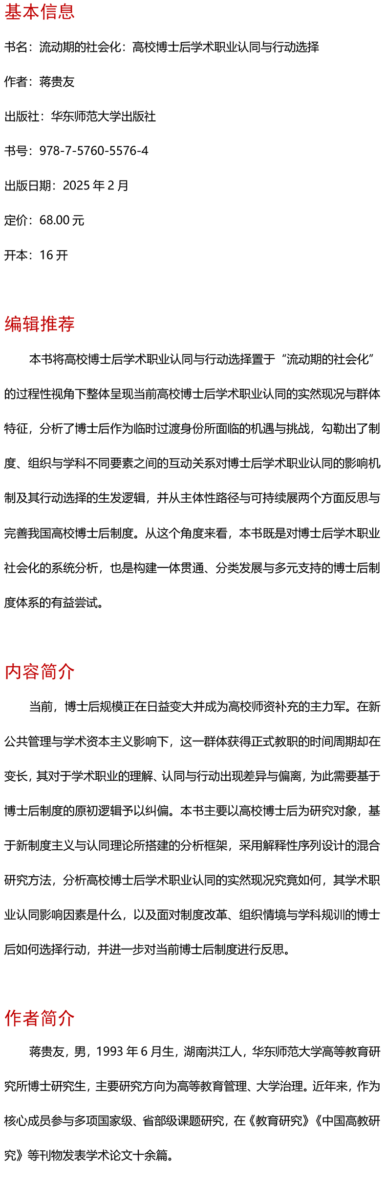 流动期的社会化 高校博士后学术职业认同与行动选择 蒋贵友