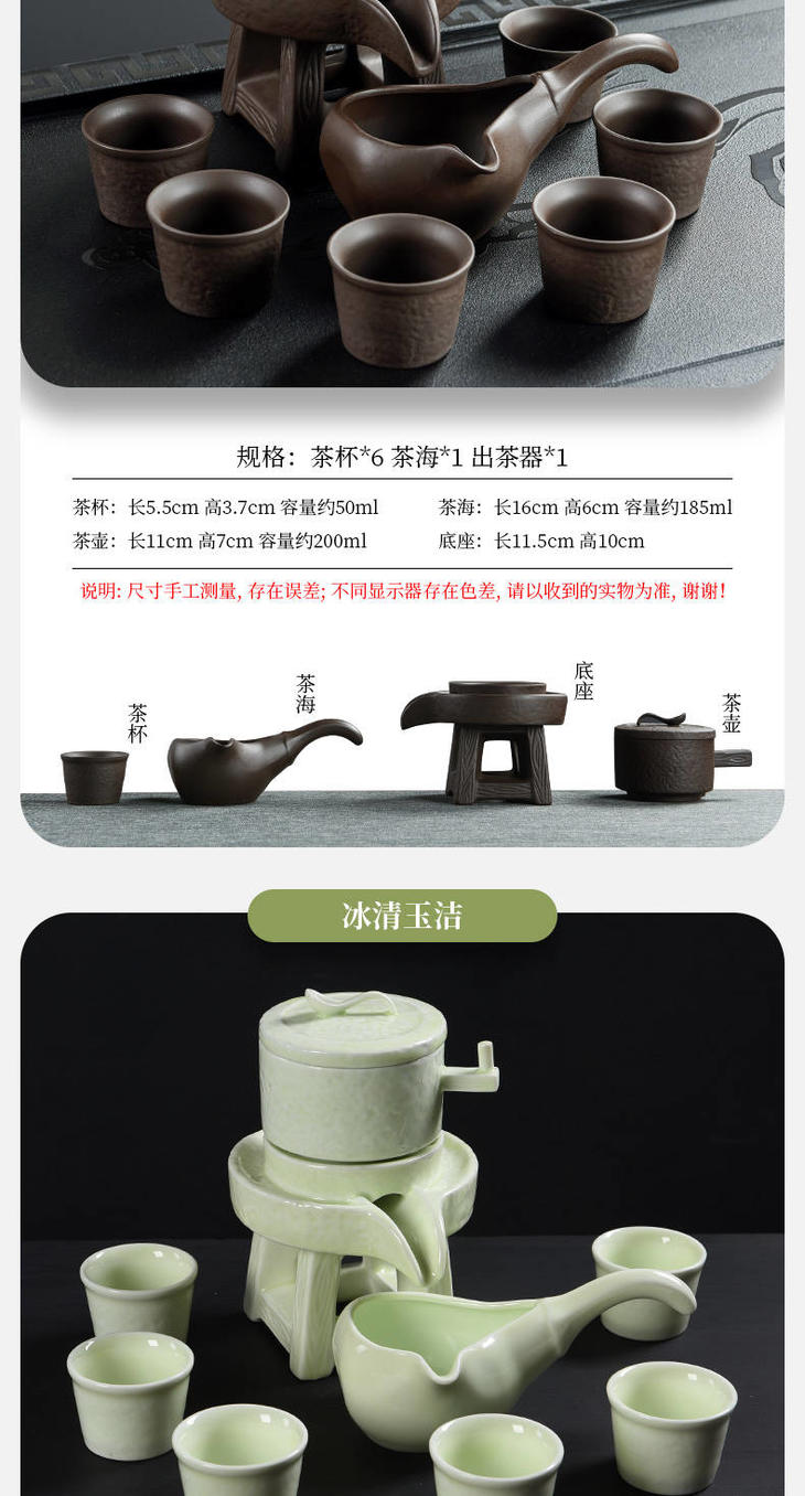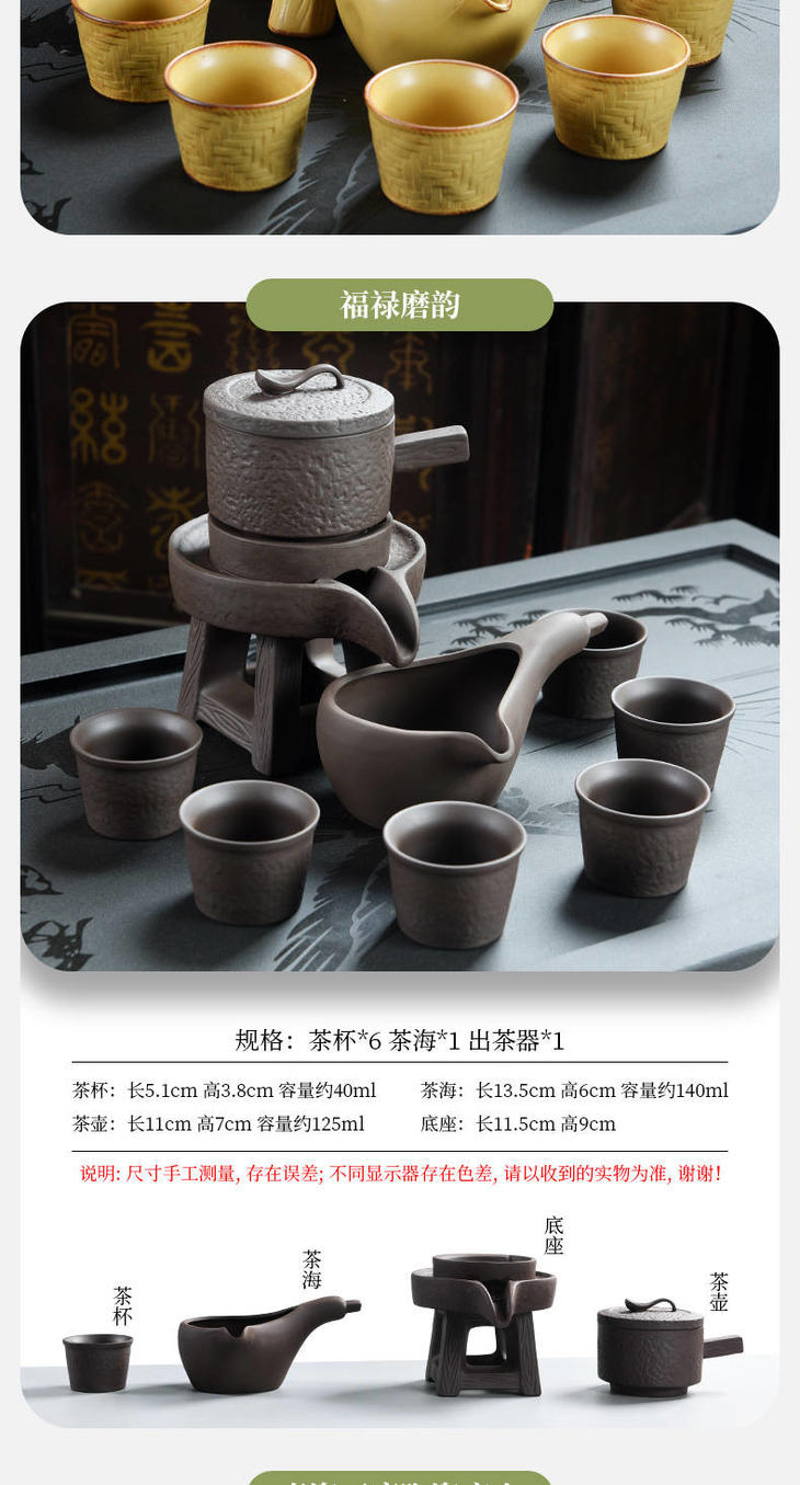 万庆兴【1石磨1海6杯】懒人半全自动功夫茶具套装家用杯套装茶盘