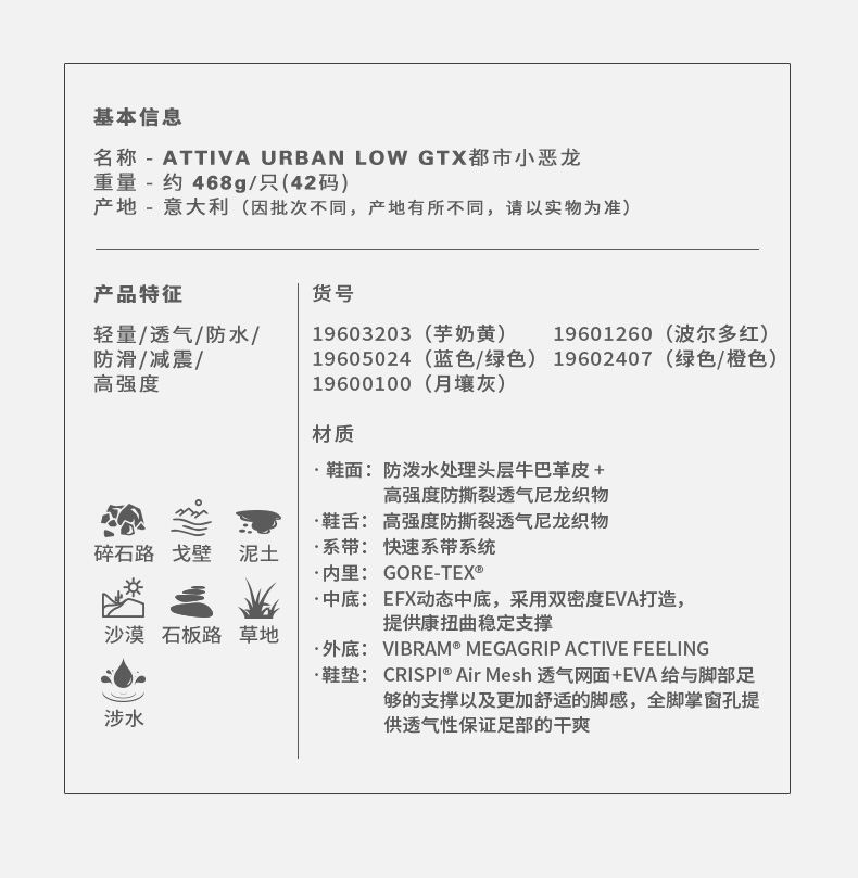 CRISPI意大利户外徒步登山鞋Attiva小恶龙都市休闲男女 19603203/19605024