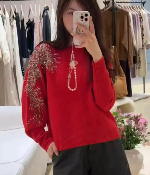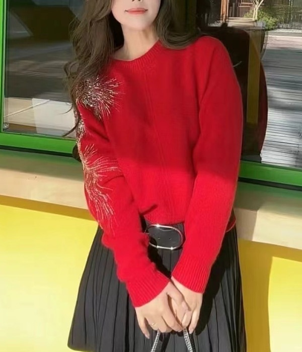 【来点不一样的】新年氛围红!柜3100+!2026璀璨烟火红色新年圣诞氛围感毛衣女针织衫!!