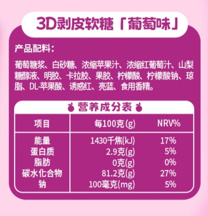 新期天葡萄bobo 3D剥皮软糖(葡萄味)75g