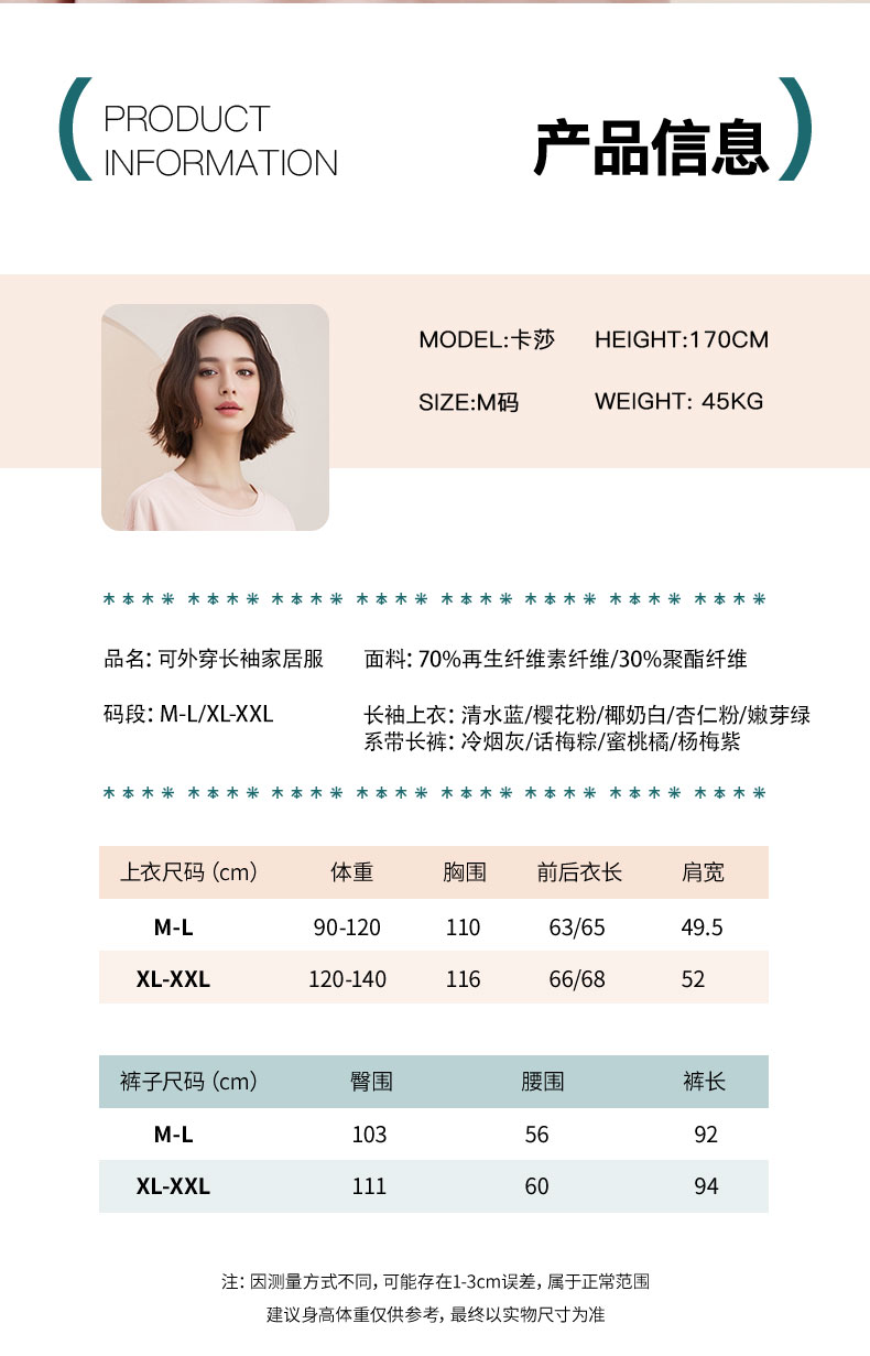 MUBENM秋款成人椰油家居服-简约宽松长袖套装女